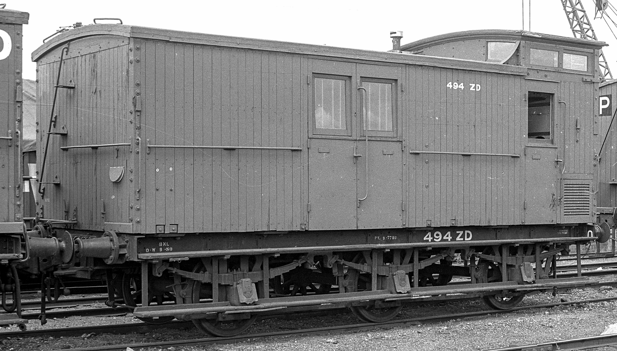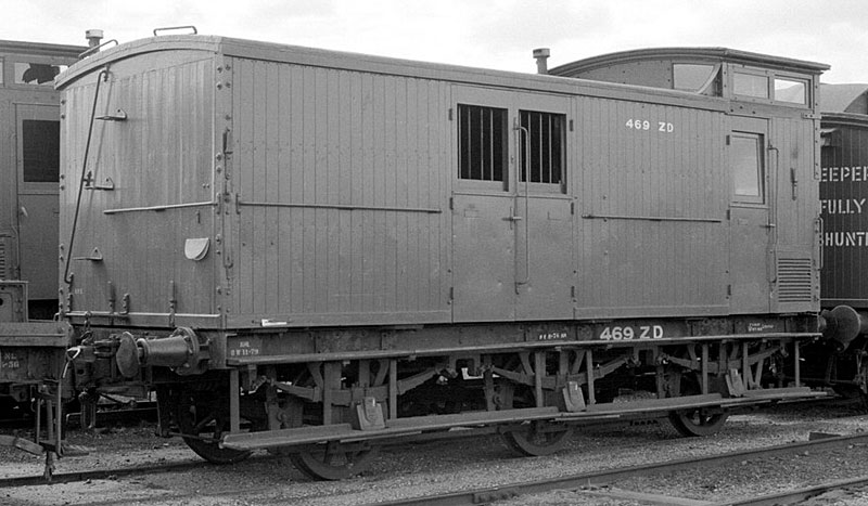 Another variant of the standard Z van was the ZD, the D meaning "dual coupled" that is, being equipped with a automatic coupler and a screw coupling. When the screw coupler was in use the auto coupler was turned aside as in the photo above. Because they had screw couplers ZD's kept their buffers to the end.