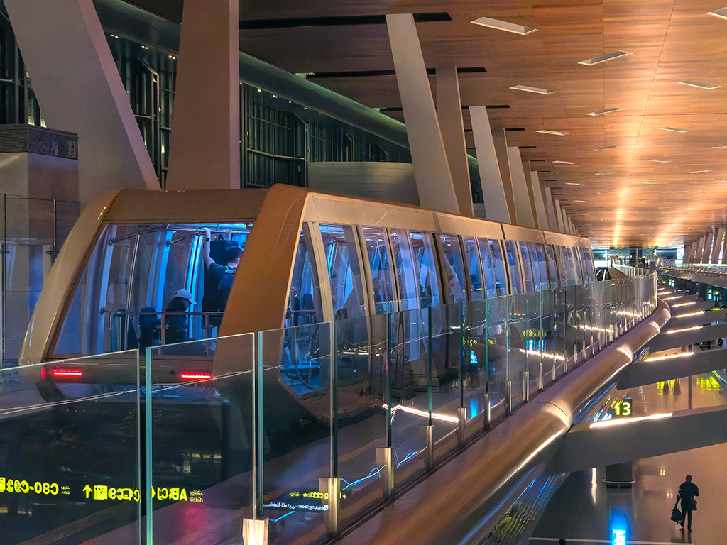 ABOVE: The driverless train that moves people around the terminal at Doha.