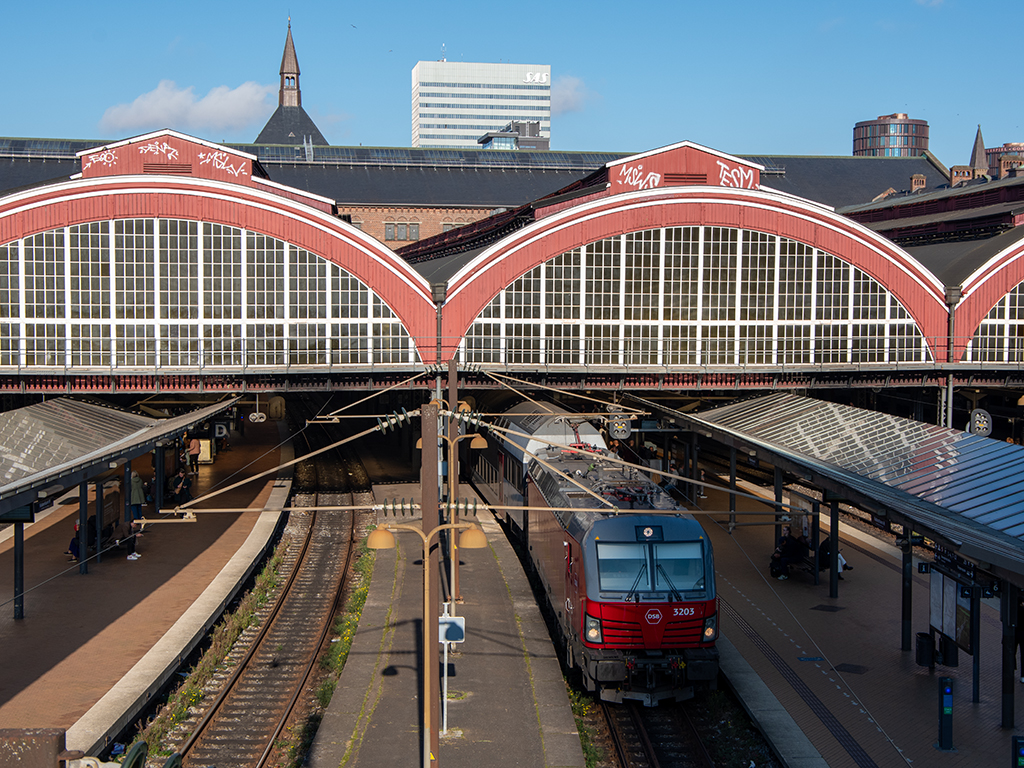 ABOVE: The main train station at Copenhagen with a train ready to depart.