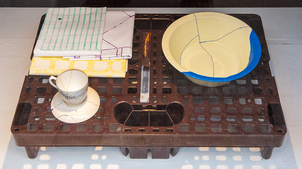 ABOVE & BELOW: Every now and then in ones life they are moments of sychronicity. The poster above asks a simple question, "is it possible to have a love affair that lasts forever?" BELOW: minutes later we came across an art gallery that was closed but that was dedicated to the Japanese art form of Kintsugi. When an item such as a bowl is broken it is lovingly repaired and after it is repaired it is now unique. When our hearts are broken we are never the same, but we go on and those hurts make us who we are. Patti Smith was once asked about this idea that "time heals all wounds" to which she replied that she disagreed, she said, "I don't think time heals all wounds, some wounds stay with us forever, but we learn to live with them, they become a part of us" Paul Simon wrote in a song "If I'd never loved I would never have cried"