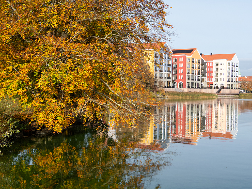 ABOVE: New apartments and shops on the lake near the cultural centre. There were piles of golden leaves under the trees and I thought of that song Forever now from Jeff Wayne's The War of the Worlds. "Through autumn's golden gown we used to kick our way, you always loved that time of year. Those fallen leaves lie undisturbed now"