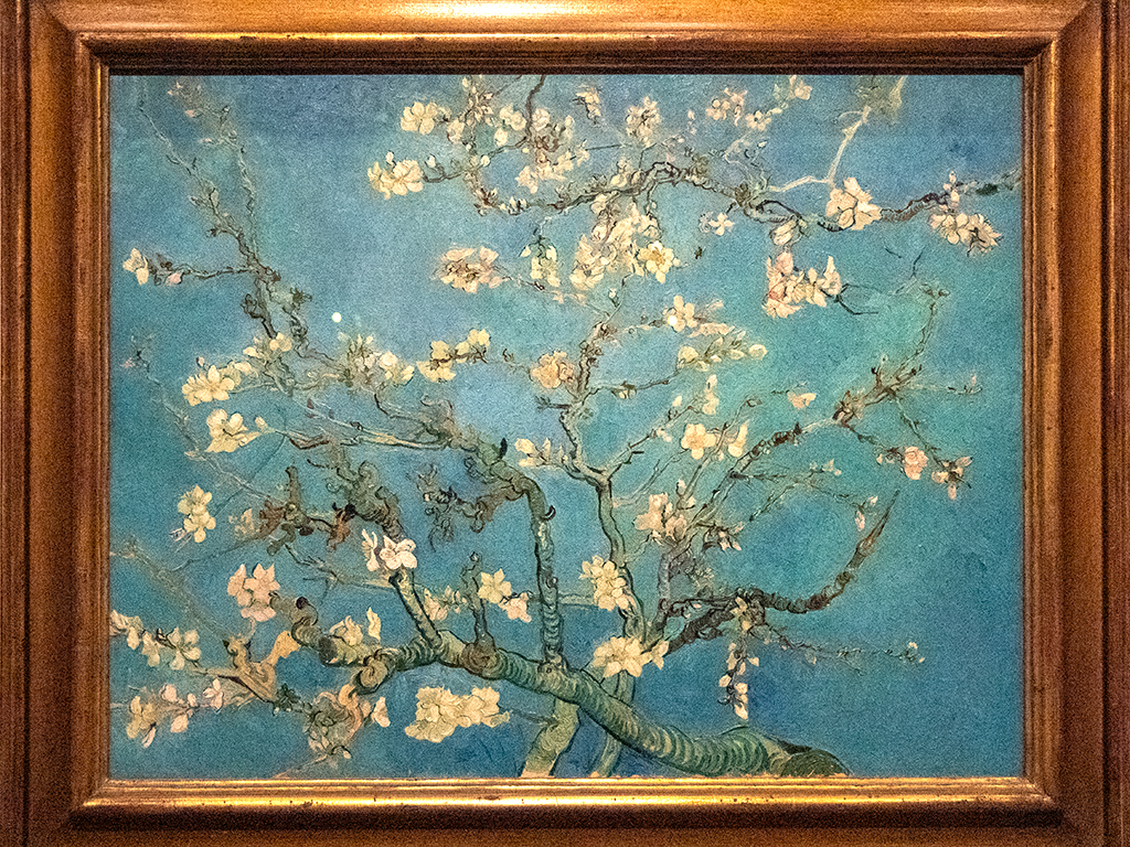 ABOVE: This painting is one of my favourites and it has a story. Vincent had been admitted to a asylum but was still painting profusely. He got a telegram from his beloved brother Theo that Theo and his wife had a baby and they named it Vincent. Vincent was so happy he painted these blossoms that of course signify new life. There is no real focal point in this painting, but everywhere you look there are blossoms, everywhere, new life! He had been so sad but the news of his brothers baby made him so happy!