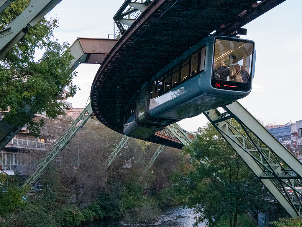 ABOVE & BELOW: Most railways put the wheels below the train but in Wuppertal they do things a bit different, the wheels are on the roof and the train hangs down above the river.