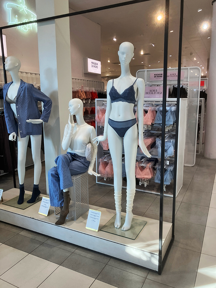 ABOVE: We kept walking, we took a shortcut through a department store that reminded me of Myers except that it actually had people in it. If you're coming to Denmark and wondering what underwear to wear, I'm here to help with this photo! BELOW, in the same department store I quite liked this display.