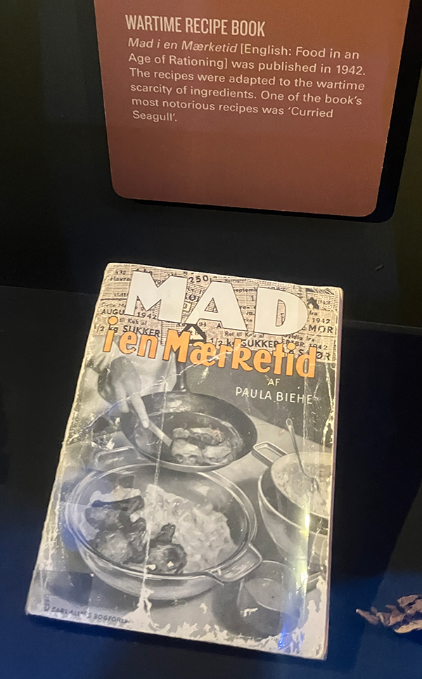 ABOVE: This cookbook was produced during the German occupation of Denmark, food was very scarce. You'd have to be pretty hungry to eat curried seagul!