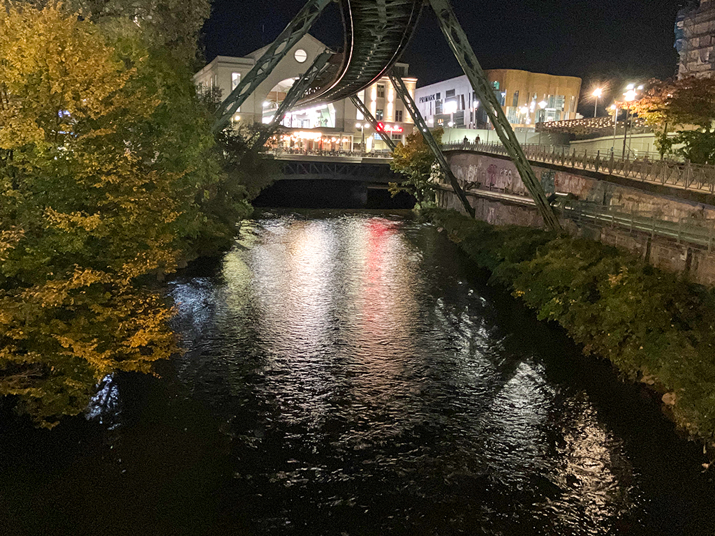 BELOW: The river Wupper flowing from under the suspended railway station taken last night just before I went to bed.