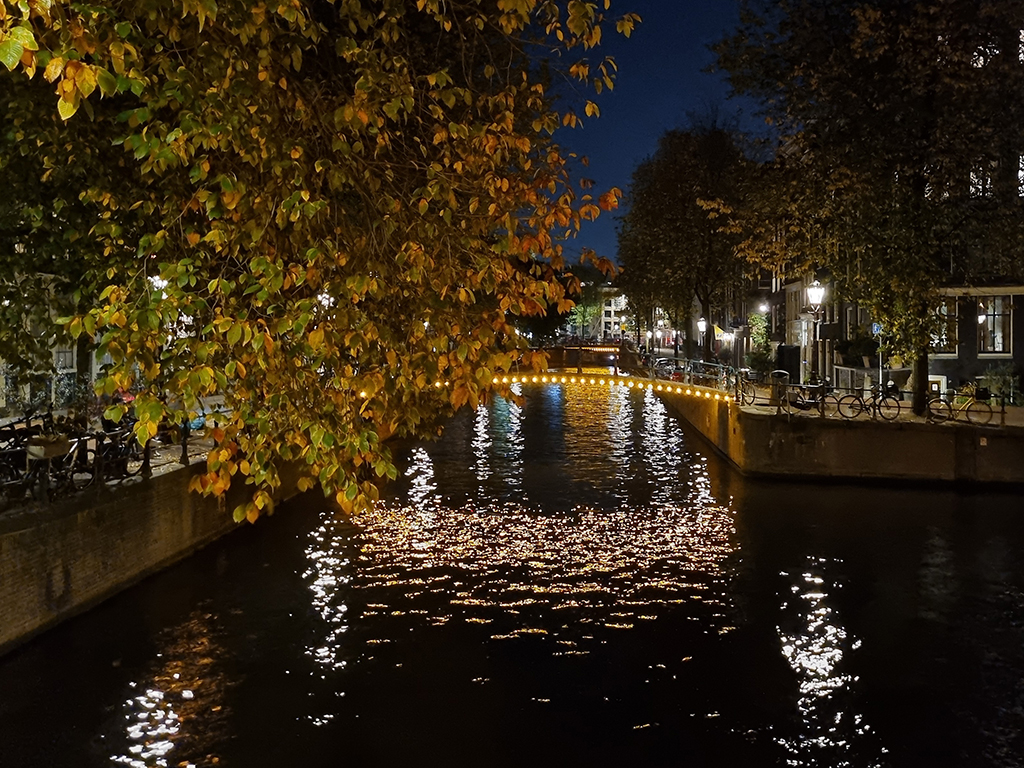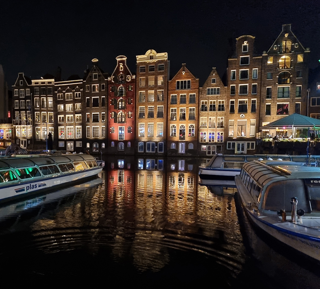 ABOVE & BELOW: Amsterdam and its canals at night. (photos by Kris)