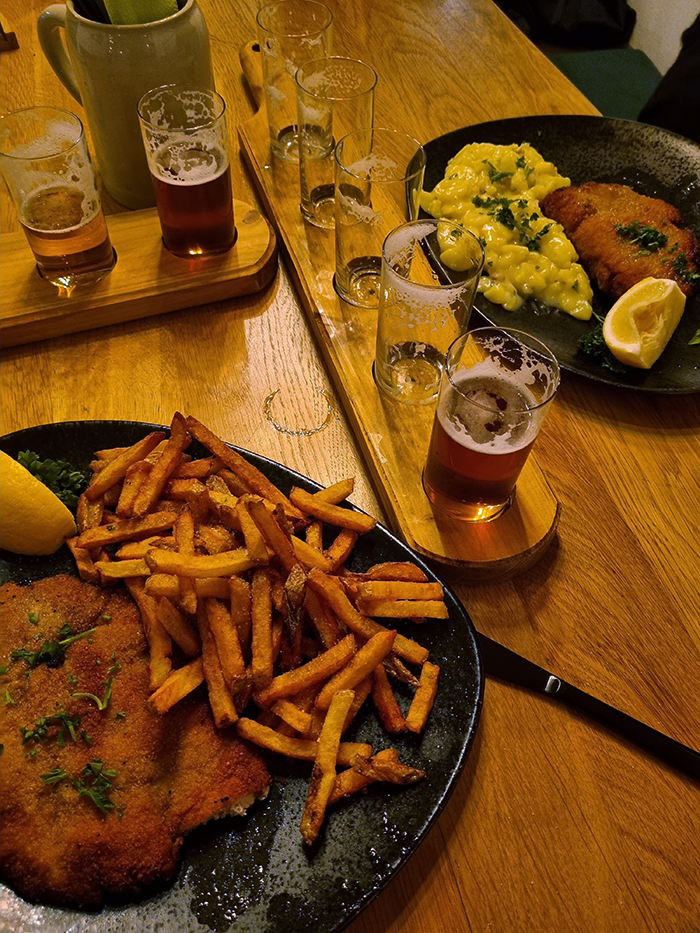 After walking around for a bit we went into a traditional restaurant that had very good reviews, first thing to do was get a beer paddle and try out their beers! BELOW