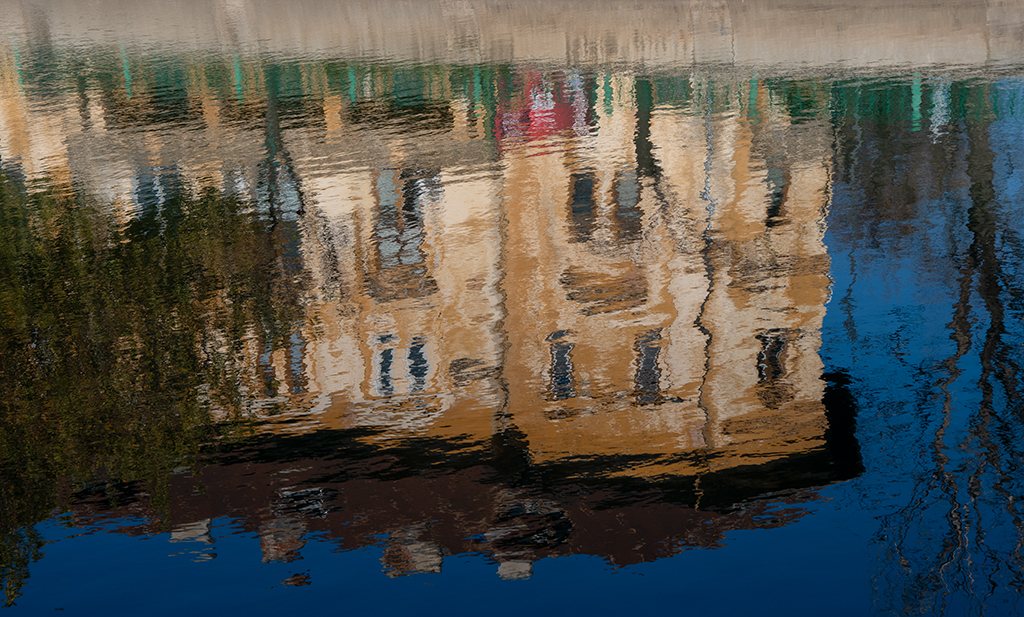 ABOVE: We walked along the Dambovita river and I liked this relection of some old buildings on the water. BELOW: Another reflection shot from our hotel balcony.