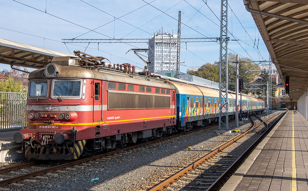 ABOVE: After our brunch on the Danube we walked back to the station to catch our train to Sofia. This train was only marginally better than the one we had just got off! The Bulgarian loco looks very Soviet era!