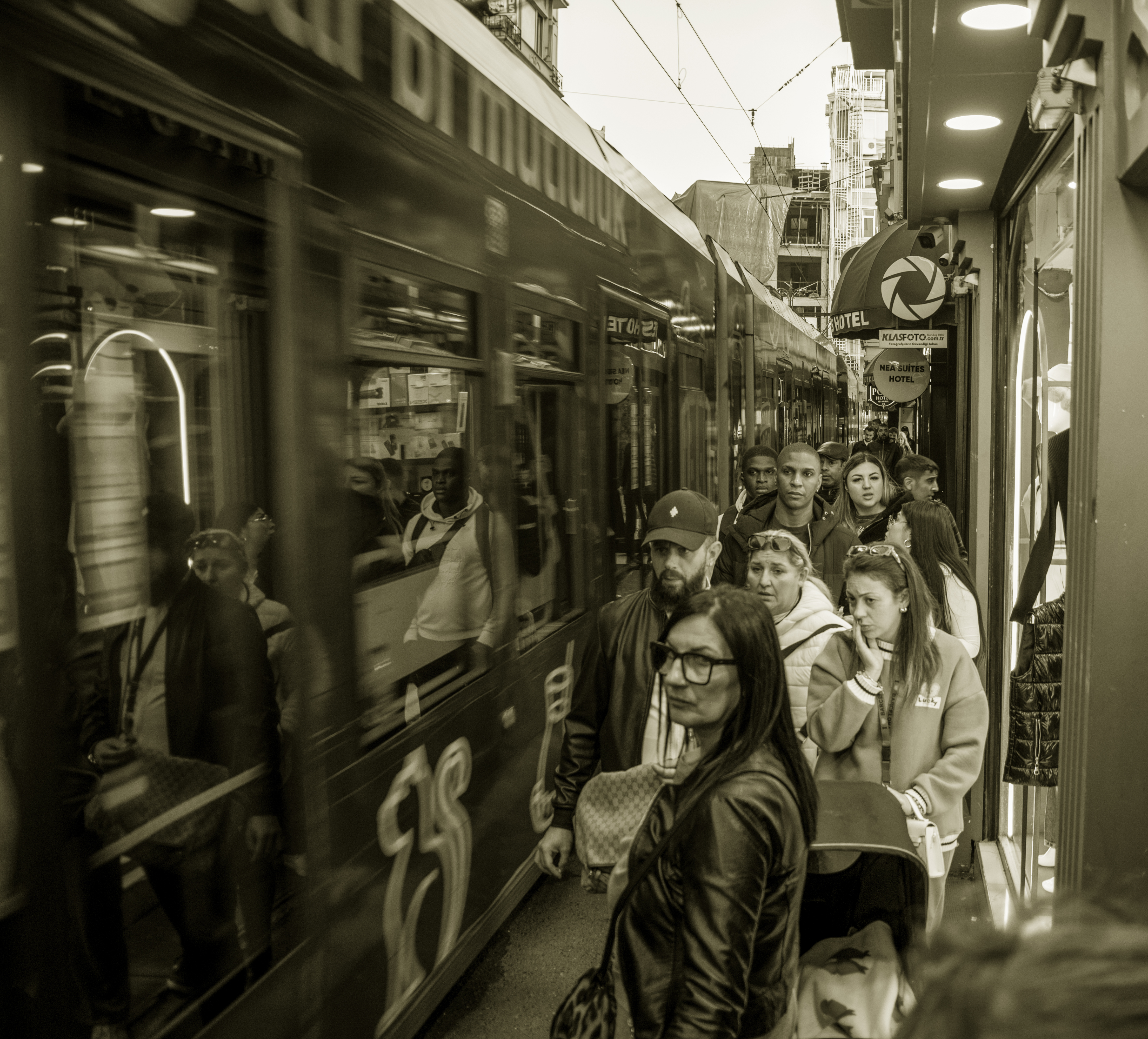 ABOVE: Our train having just arrived at Halkali. For some reason the train does not go into Istanbul but dumps you at a place called Halkali which is a 10 stop commuter train ride into Istanbul. The ticket machine to buy the ticket seemed a bit confusing but there was a security guard that was cheerfully helping everyone to figure out the ticket machine. We got off at the metro station Sirkeci which is the same place as the international trains used to terminate at. After a really good Turkish coffee we walked to our hotel. Every business in Istanbul seems to have a cast of thousands. And there is always help at hand if you ask for it from "my friend will show you" I don't know how many people actually work in Istanbul because everywhere you see blokes sitting around in groups at cafes drinikng tea and smoking cigarettes.