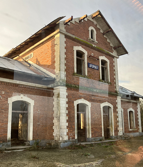 ABOVE: The stations between Craiova and Viden were as sad as the train. This station is actually in use, the train stopped at it and passengers got on! BELOW: Believe it or not this is an "in use" station. We stopped here and someone got on. I think those are the foundations for the old station building behind the station sign.