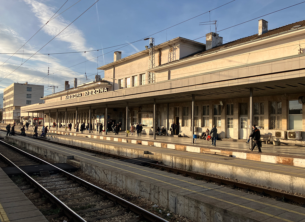 It didn't look far on the map but todays travel was an ordeal. We only had one train to catch from Craiova, a 07:20 departure to Vidin, the border, where we would catch a train to Sofia. We left our hotel in darkness, we were too early for breakfast so the hotel made us up a take away breakfast. On our walk to the station it was -2 C with heavy frost on the cars and the puddles of water were frozen solid. My eSim, without warning, had run out so I had major problems validating my Eurail pass.The station was bizarre, it only had 4 platforms but our train was departing from platform 28! Turns out platform 28 was a little dead end platform near the station building. Our train was a sorry sight. A little 2 car train covered in graffit with shattered windows and no heating. The toilet was unspeakable. But it got worse, the track conditions were so bad that the train trundled along at about 30 km/h almost all the way to the border at Vidin.