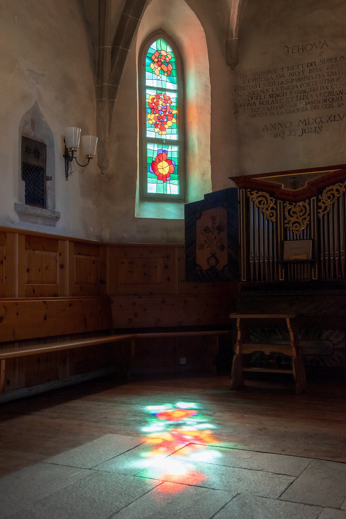 ABOVE: This a view from our hotel of the village with the church, BELOW is a photo from inside the church.