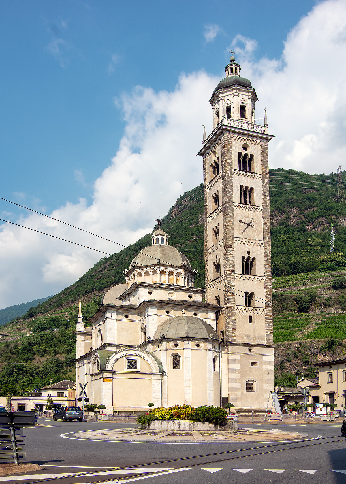 The official name of this is Santuario della Madonna di Tirano, up on the hill was Chiesetta di Santo Stefano