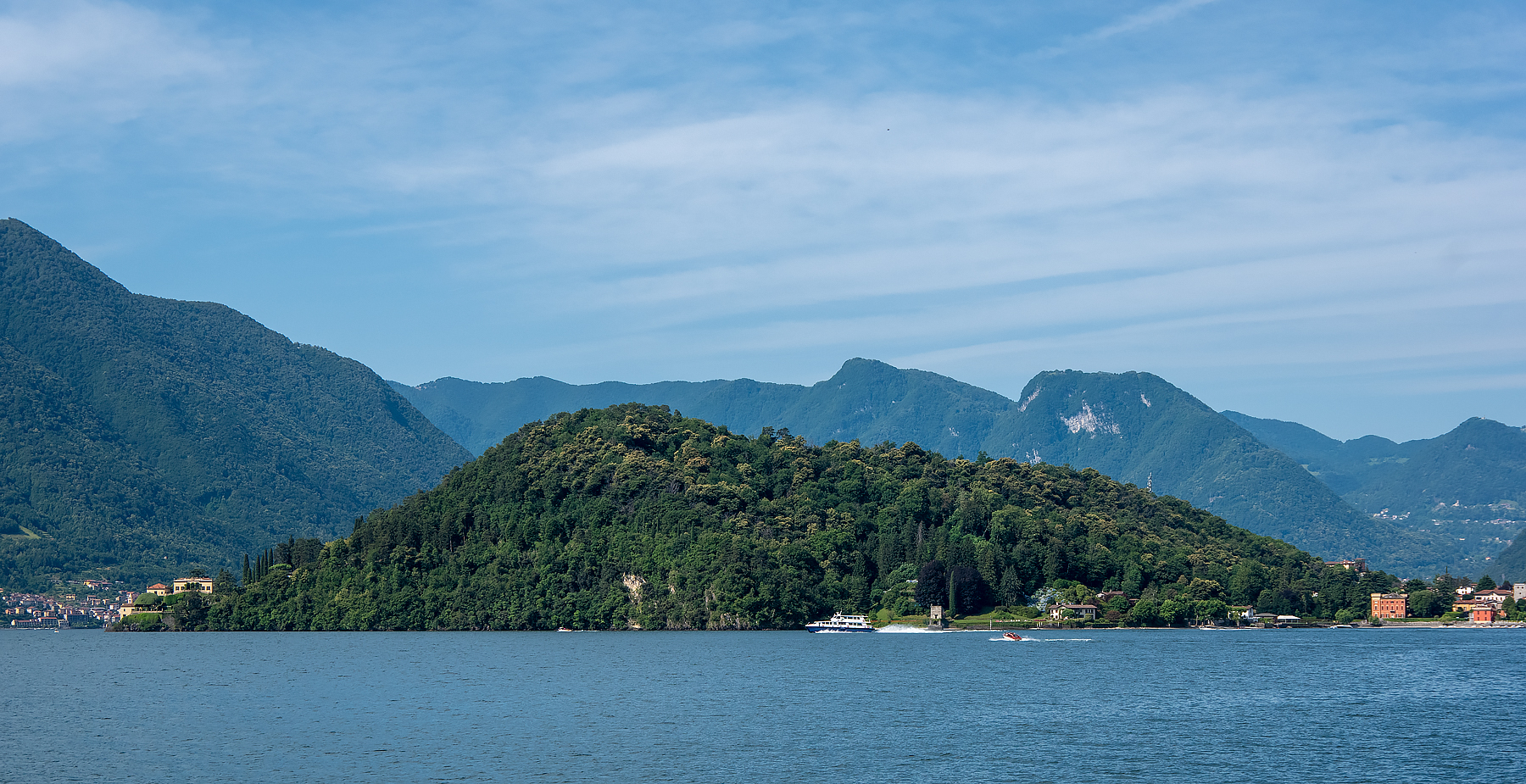 ABOVE: This photo, taken from the ferry shows the land jutting into the lake from Lenno, Villa del Balbianello is at the far left and our ferry is about to dock at the far right of the photo.