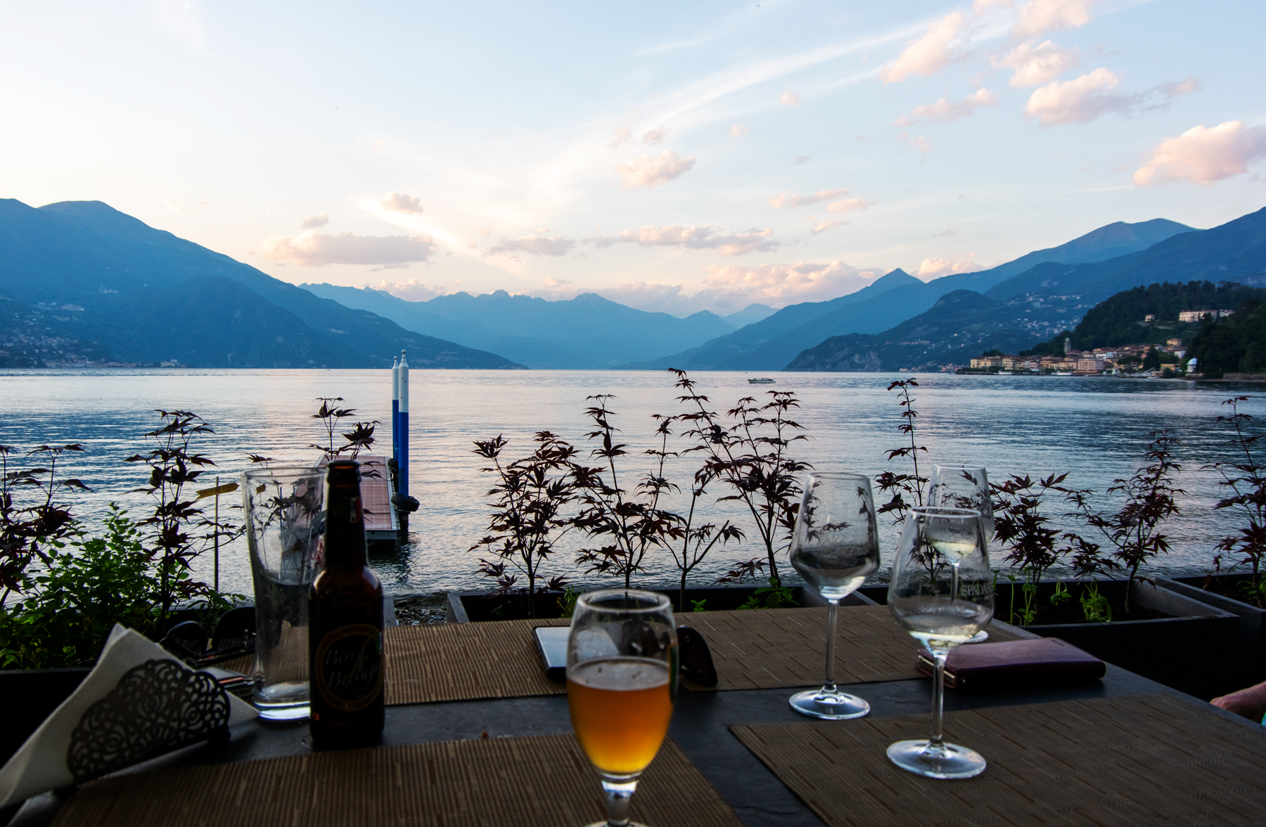 ABOVE: Pretty soon the boat arrived at Bellagio. This is where our tale of woe began. Our host told us that following Google maps would not get us to the right place so she sent a video of how to get to our place. The only problem was that the video assumed you were driving there in a car. After a text exchange worthy of a Keystone cops episode we threw the towell in and had lunch. Bellagio was overrun by tourists so getting a table and then getting our order in, took forever. After lunch we decided to try again, this time by taxi, the only problem was we sat at the taxi rank for an hour and not one taxi was to be seen. We decided to enter the address in Google maps and follow its directions. As we were walking I got a text saying "where are you?" I described where we were and was told to stay there "I will pick you up". We finally arrived at our place which is superb but we were all in a pretty low mood. After settling in Kris and I walked down to the lake and found a little bar in an alleyway to have a beer and Aperol Spritz. It was mid 30's and humid so the shady lane and cold drinks were like heaven.