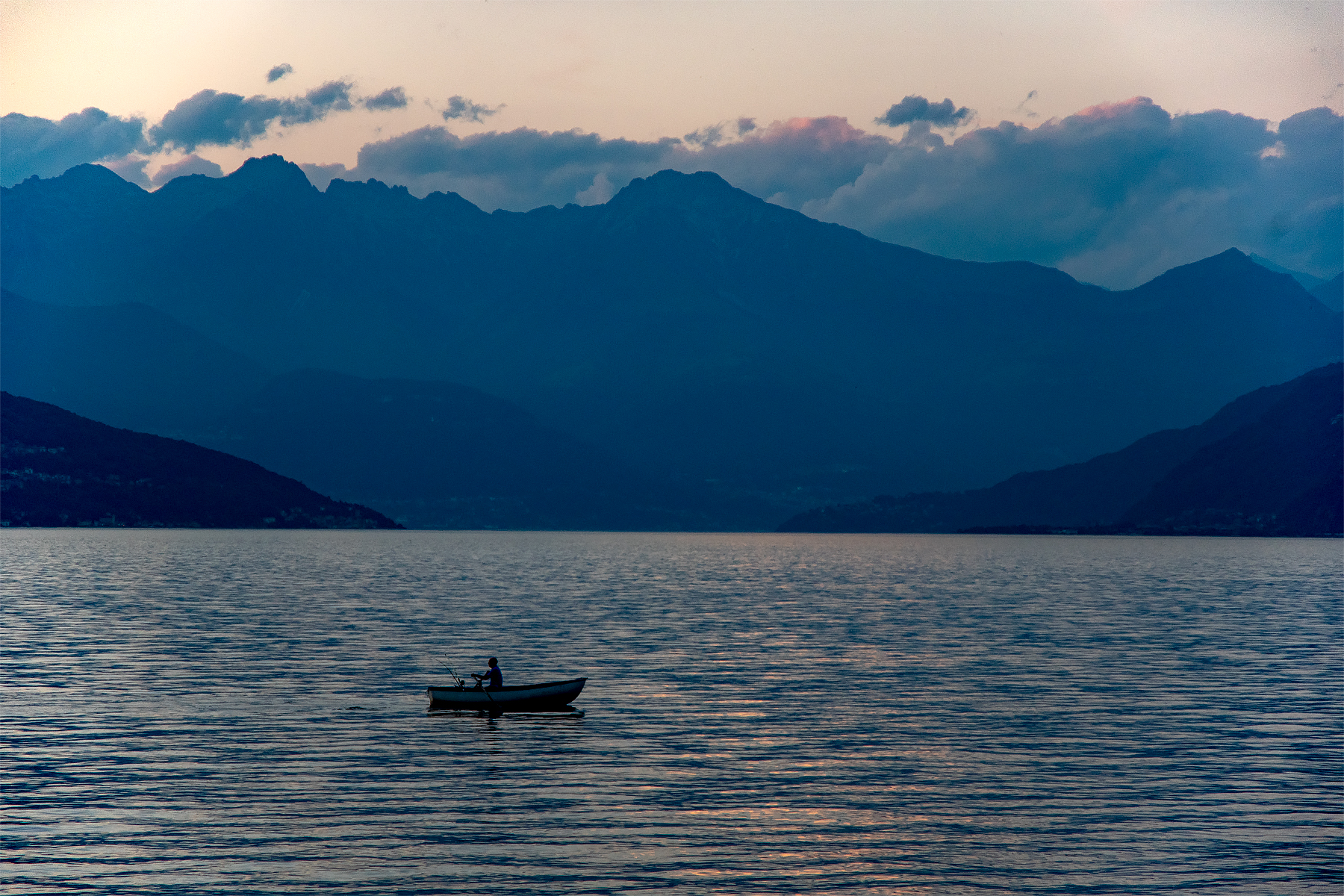 ABOVE: The view from where we had dinner tonight overlooking Lake Como from San Giovanni. BELOW: just before leaving the restaurant I snapped this fisherman rowing back and forth with a net.