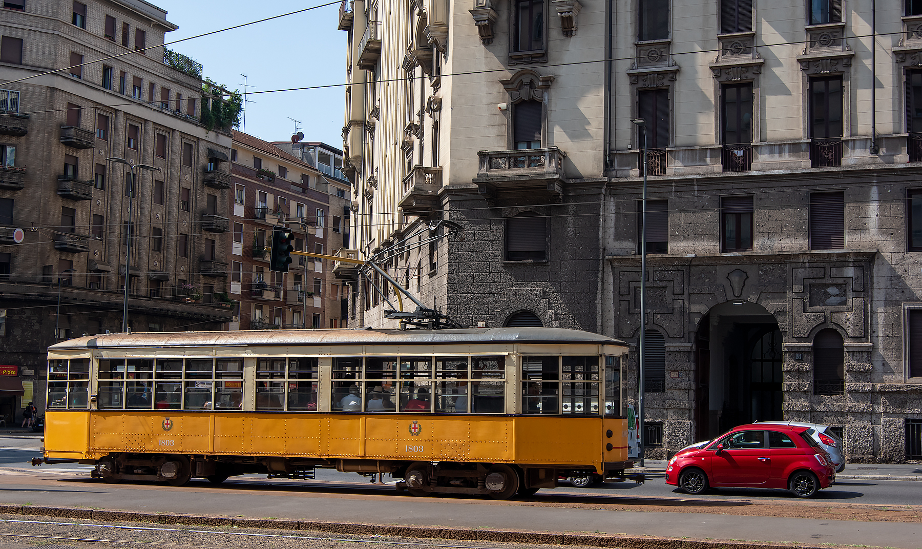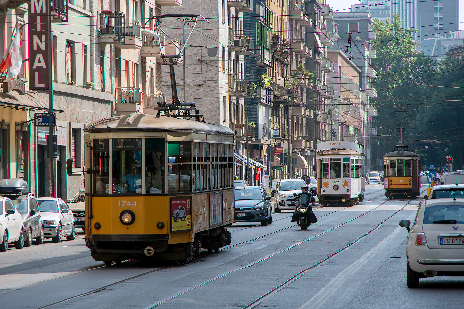 ABOVE: On our walk to the station I shot another of Milan's ancient trams.