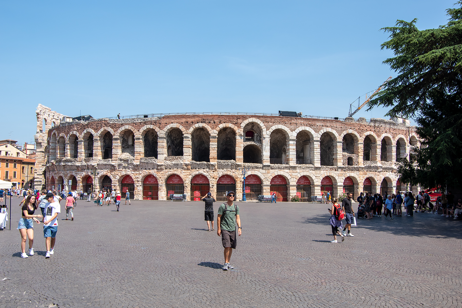 ABOVE: About 2 hours of of Milano we got off our train at Verona. It is home to an ancient Roman Coloseum type structure, unlike the one in Rome, this one is still in use and that night was hosting an opera.
