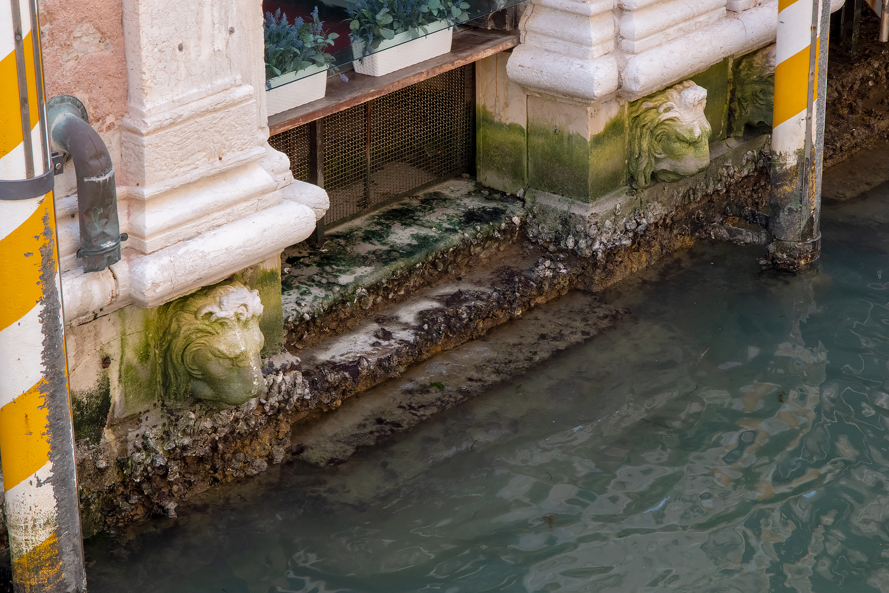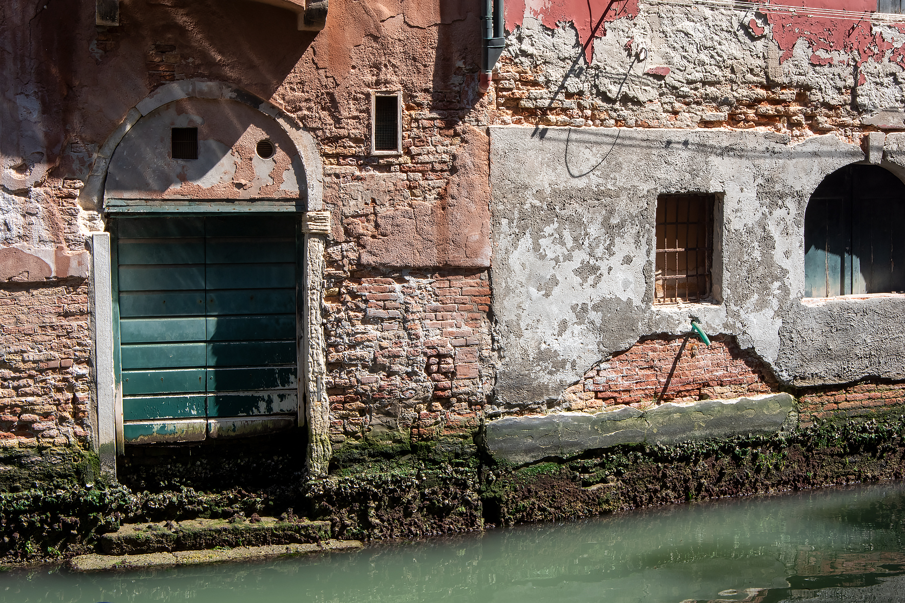 ABOVE: An entrance to a building from a canal. The top of the green line is where high tide gets up to.