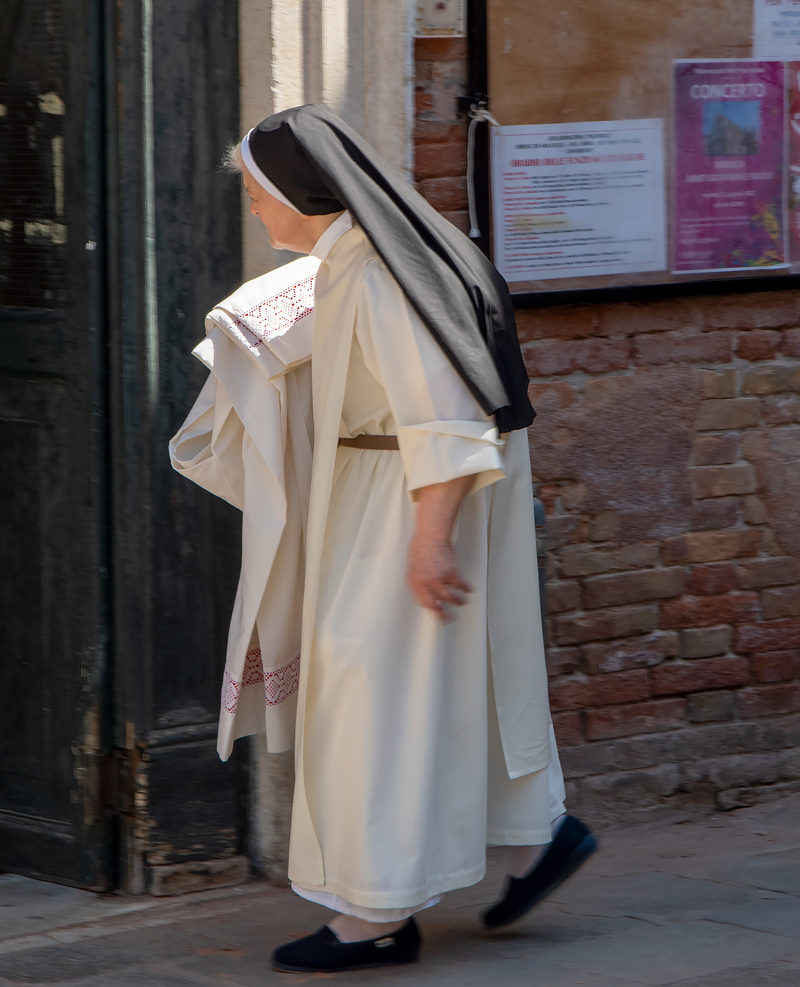 ABOVE: We signed up for a walking tour and whilst waiting at the meeting point I saw this old nun heading into church with some linen.