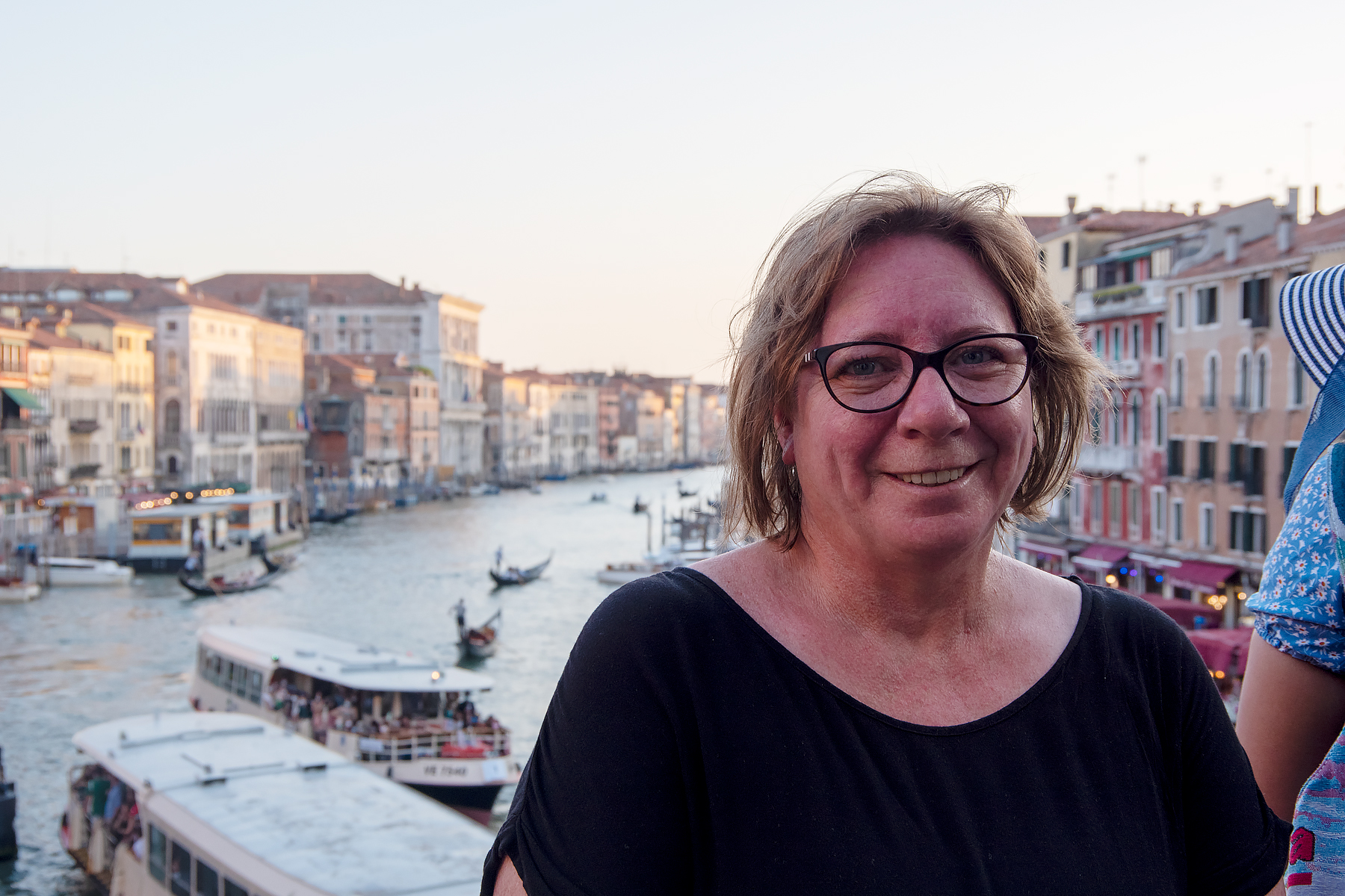 And here is Kris, a few hours later, after our siesta, on the Rialto bridge.