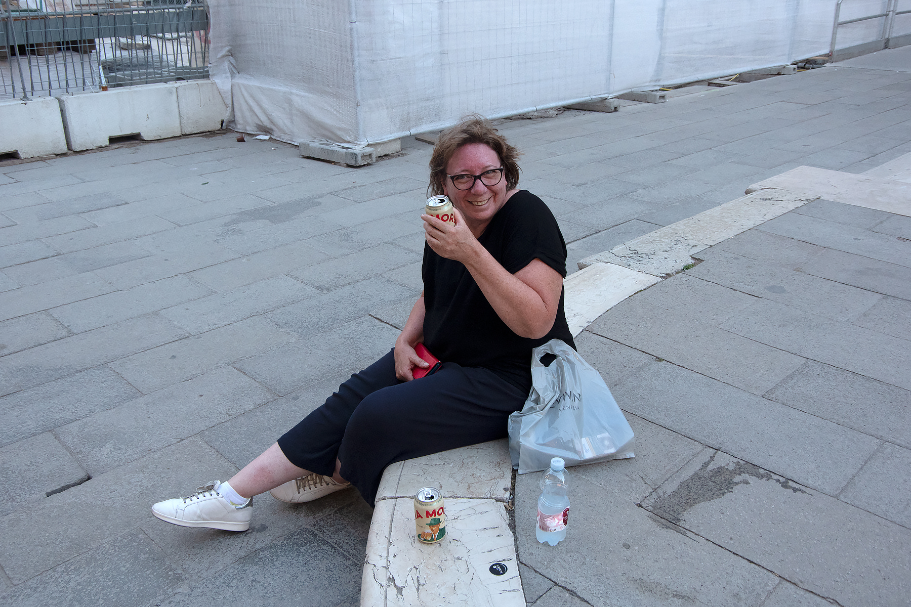 ABOVE: No visit to Venice is complete without a visit to St Mark's square. This is the home of 12 euro coffees, 20 euro beers. But clever me found a milk bar just around the corner and bought 2 cans of Birra Moretti and a bottle of water for euro 6.50 BELOW: Who says St Mark's square has to be expensive? We even had a marble table.