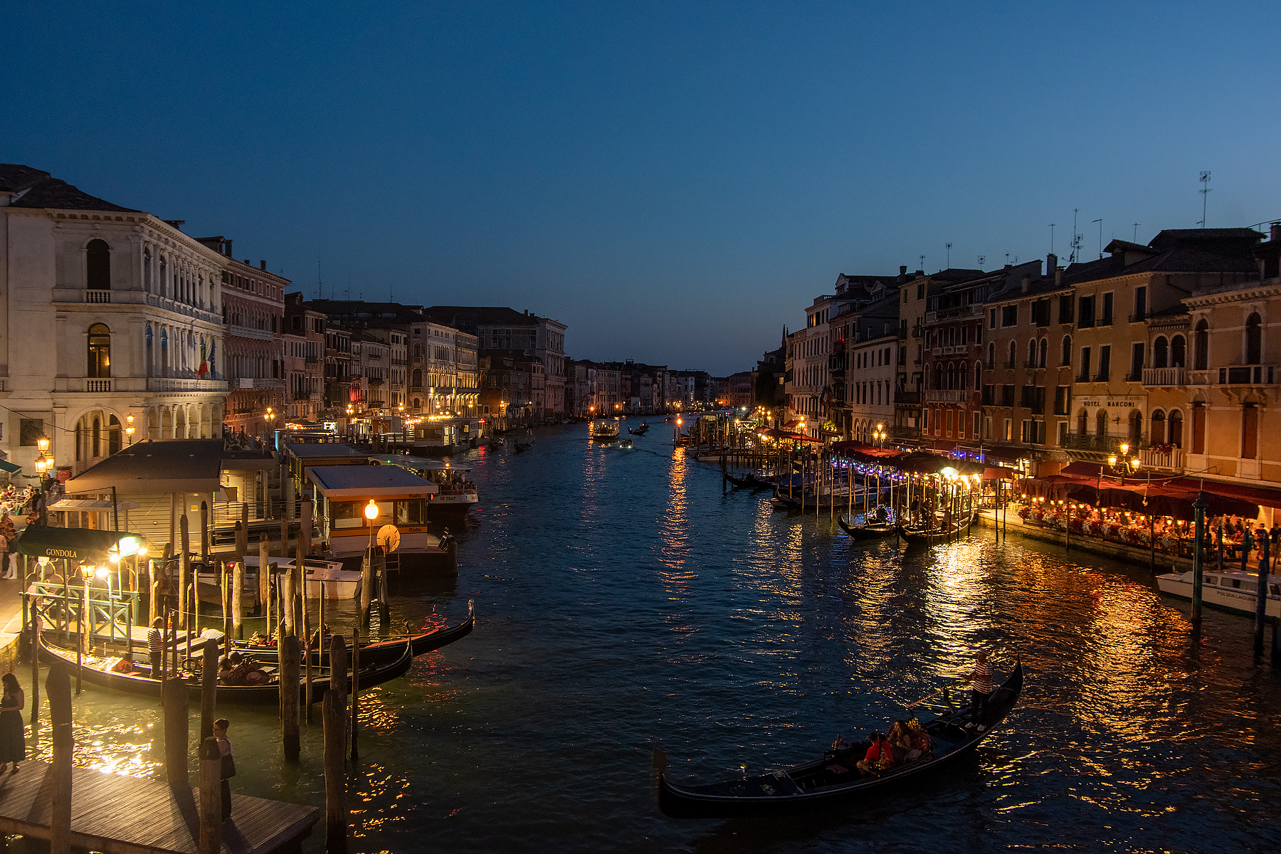 ABOVE: A final shot, after sunset, of the grand Canal from the Rialto bridge.