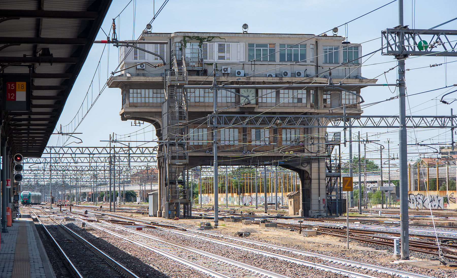 ABOVE: One of the impressive signalboxes at Bologna. The clock was showing the wrong time but our trains were bang on time.