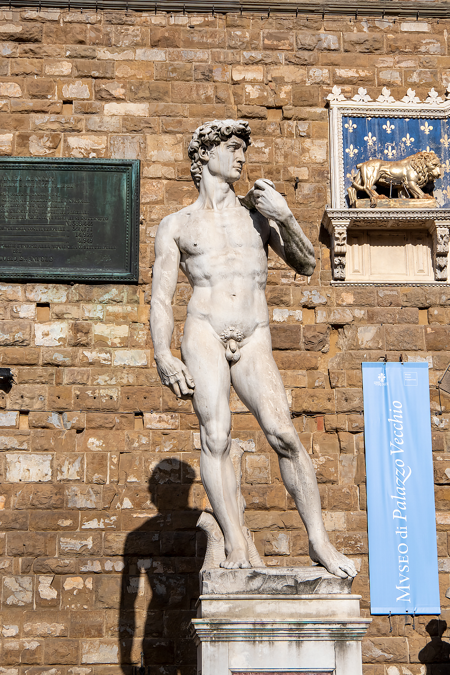ABOVE: In Piazza della Signoria there is a replica of the famous statue of David. We found out that to get to see the original costs 22 euros and is hard to get tickets to so this maybe the best we can do. I think he looks better with a tan anyway!