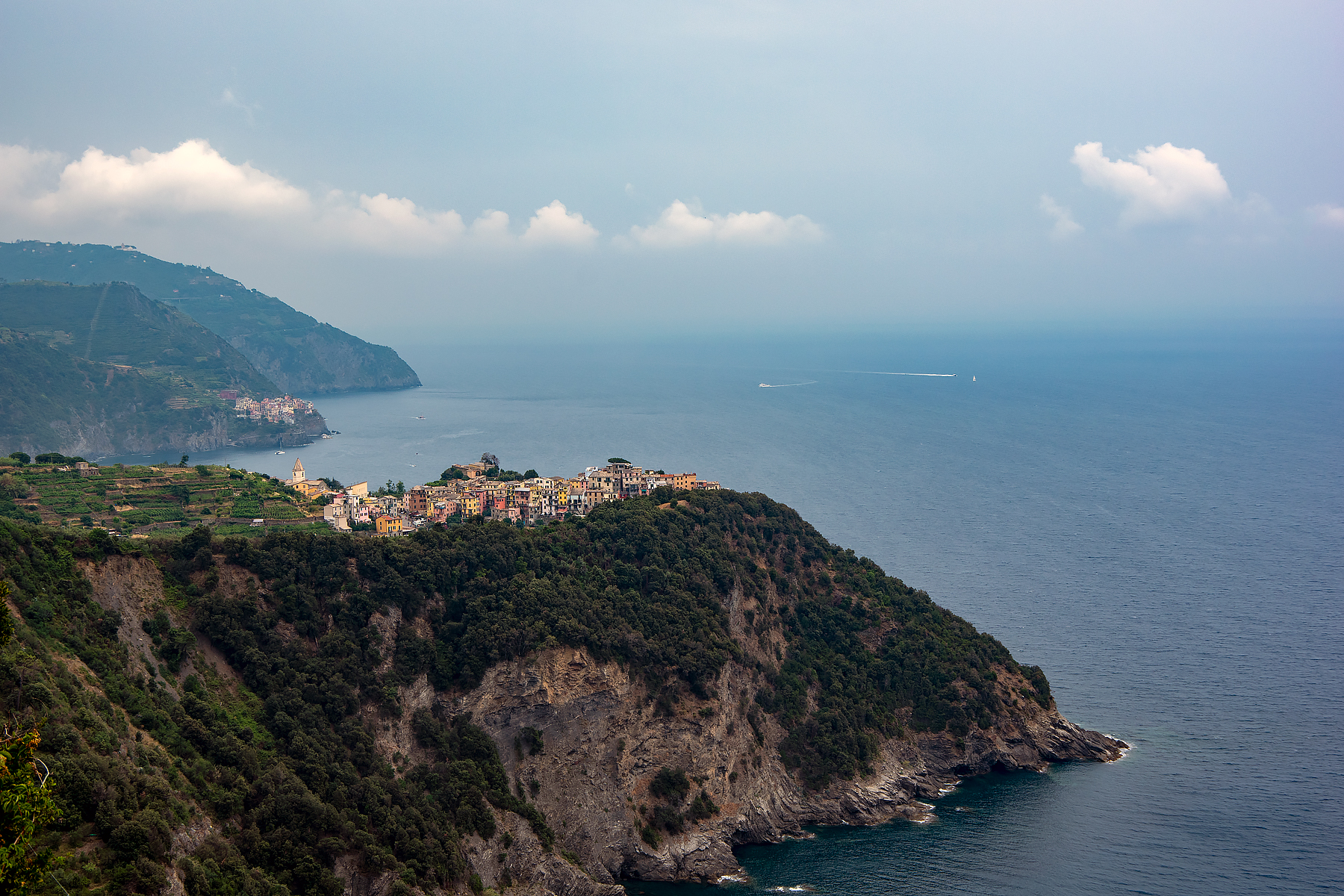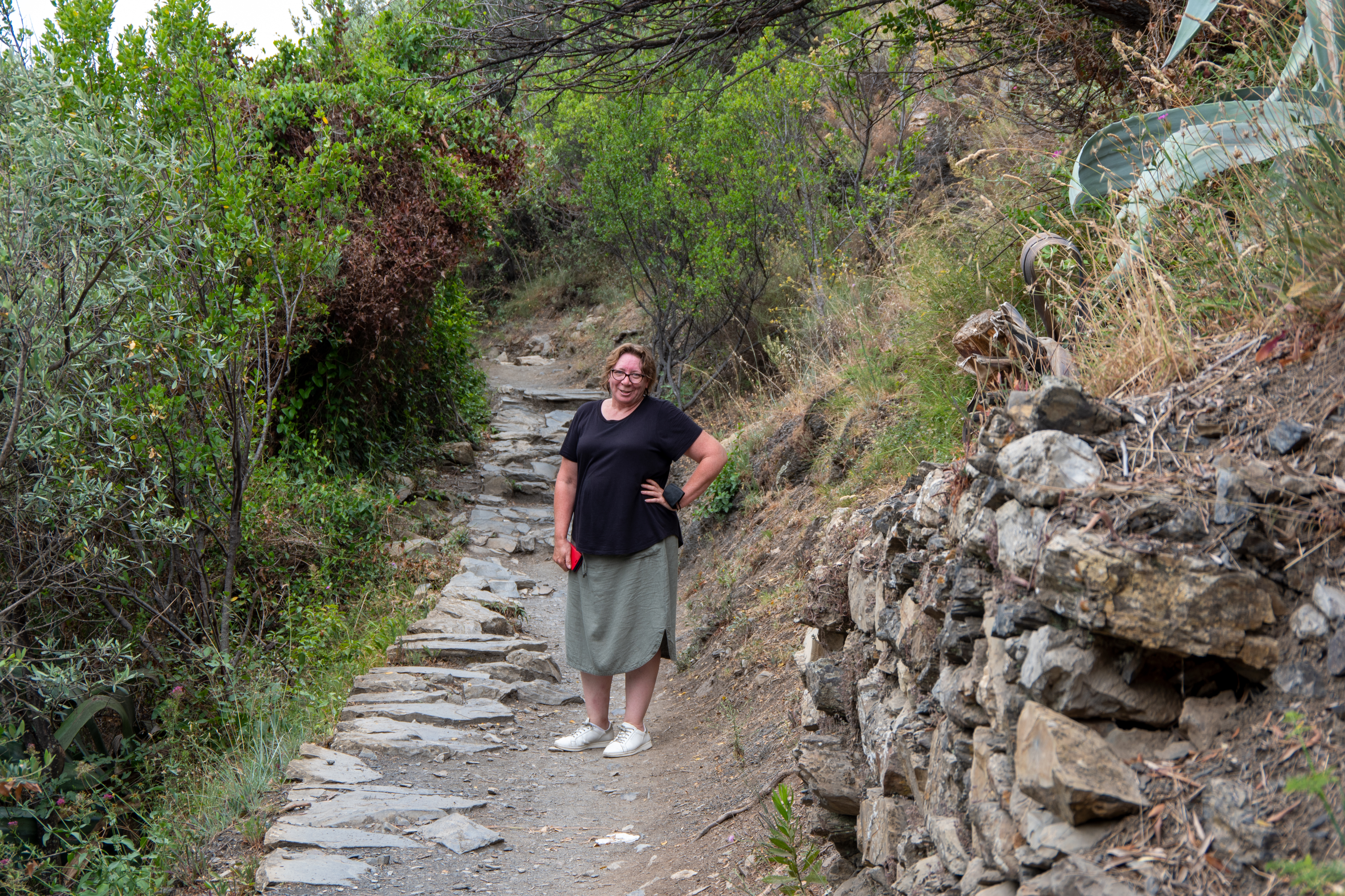 ABOVE: Kris on an easier part of the trail. BELOW: Near the end of the trail with Vernazza in sight.
