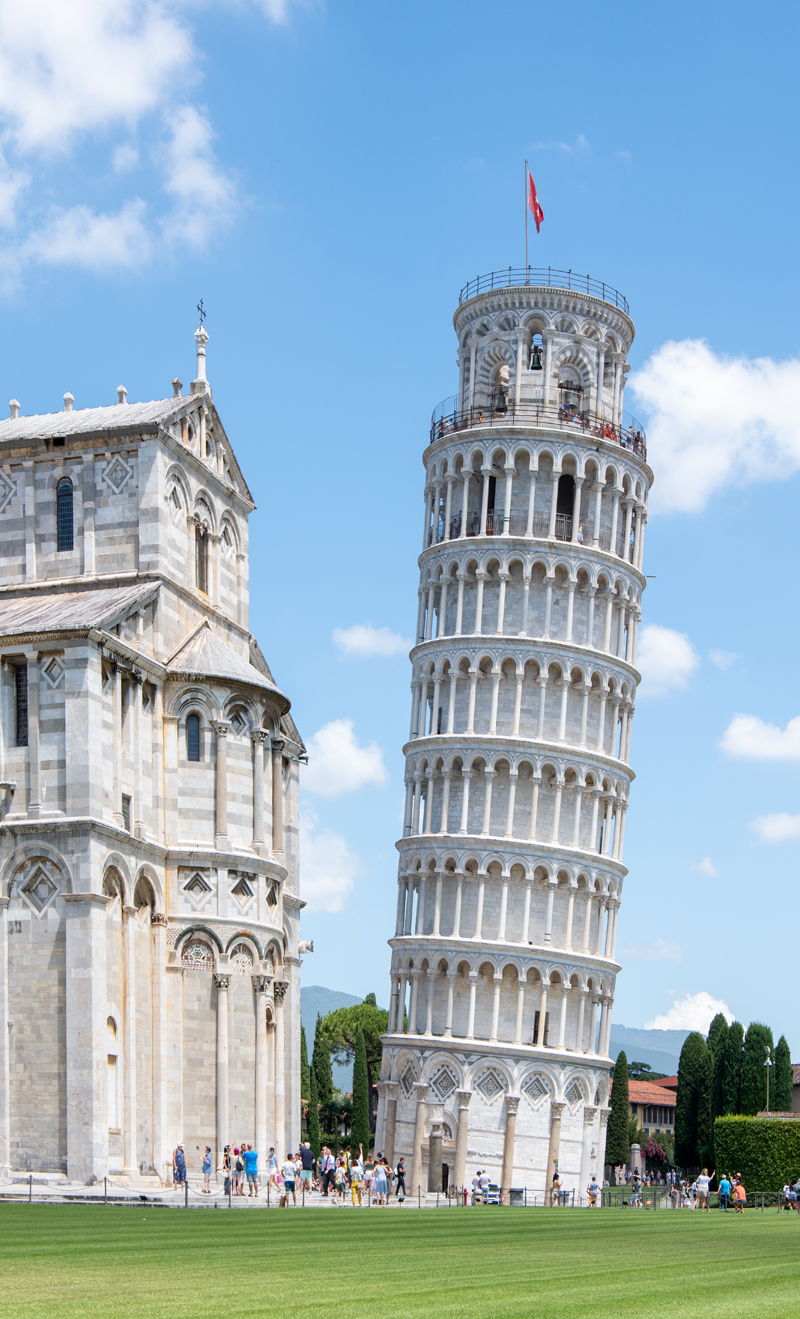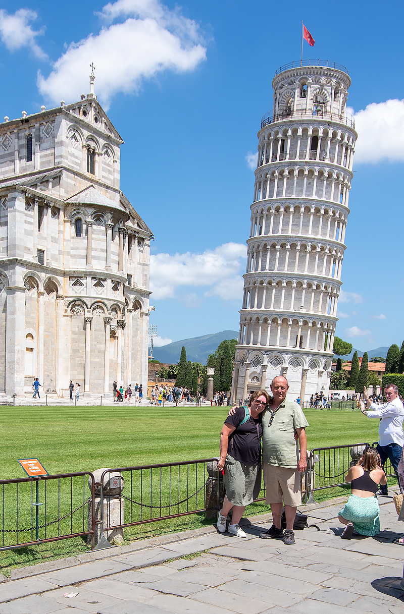 ABOVE: After checking our bags at Pisa Centrale we walked to the Leaning Tower, a fairly long, roundabout walk in extreme heat. Yep, the tower definitely has a lean to it! What I didn't realise is if you forget about the lean it is a beautiful structure. I believe that the soil engineer that analysed the soil never found employment again and I would have loved to have heard the arguments between the church and the builders when the tower began leaning as soon as it was finished.