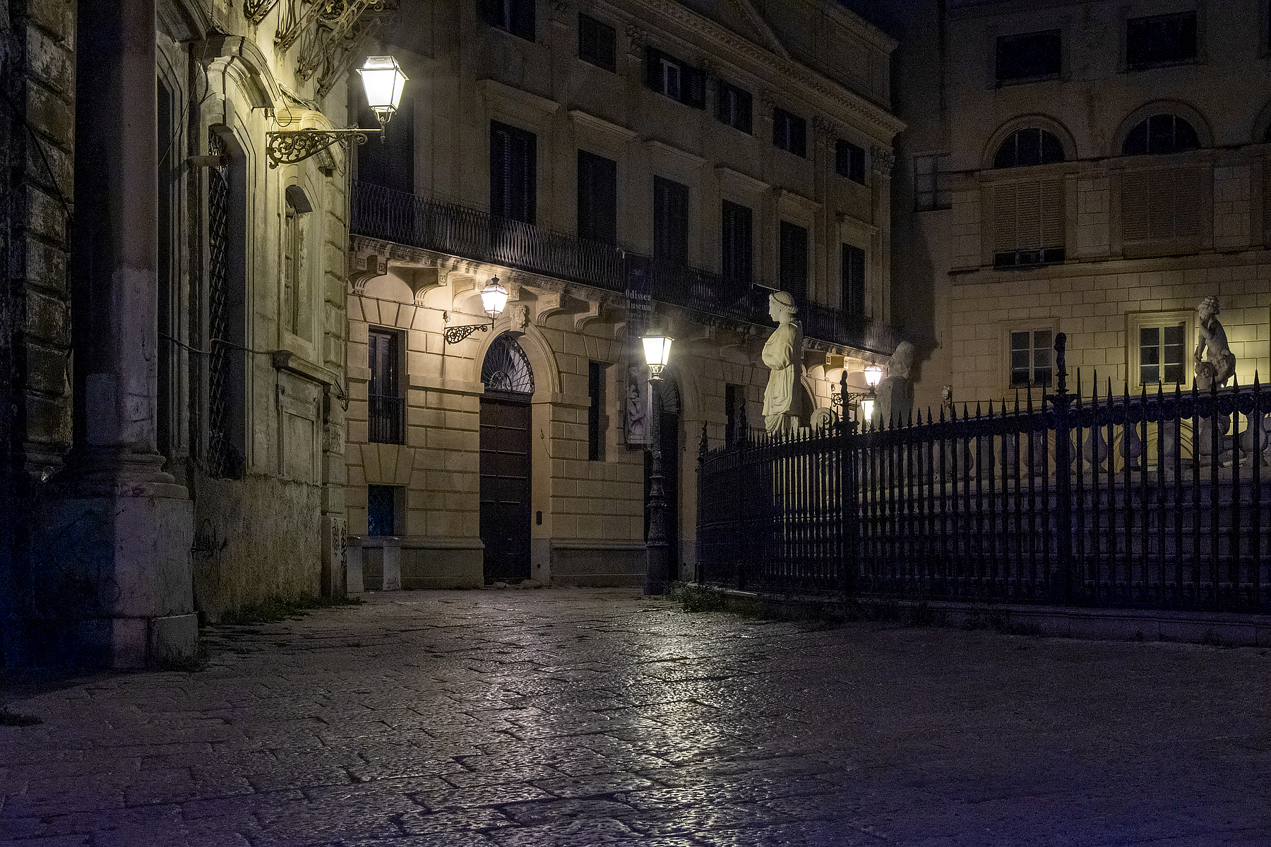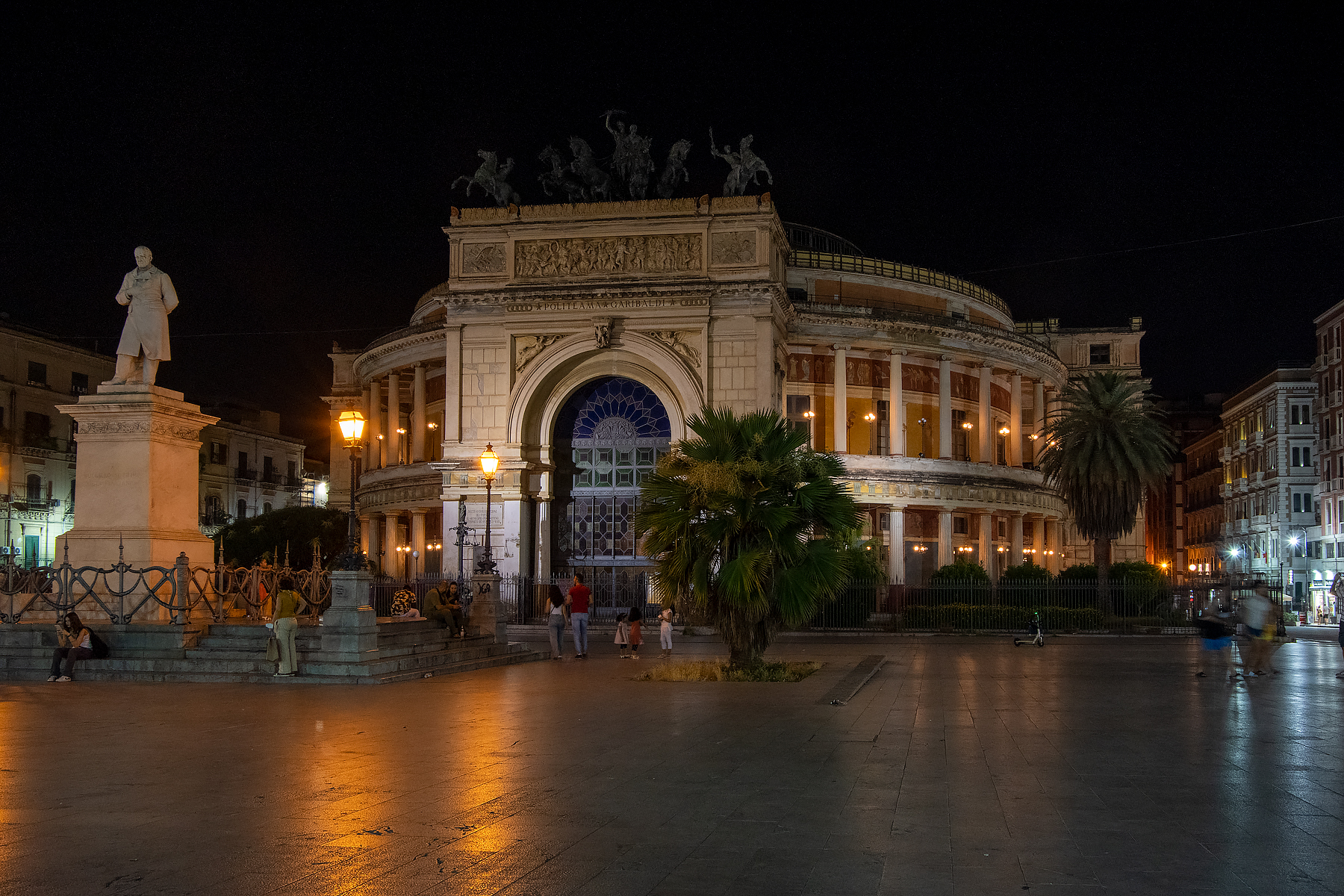 Two night shots of Palermo, BELOW, the famous opera house of Palermo, Teatro Politeama Garibaldi