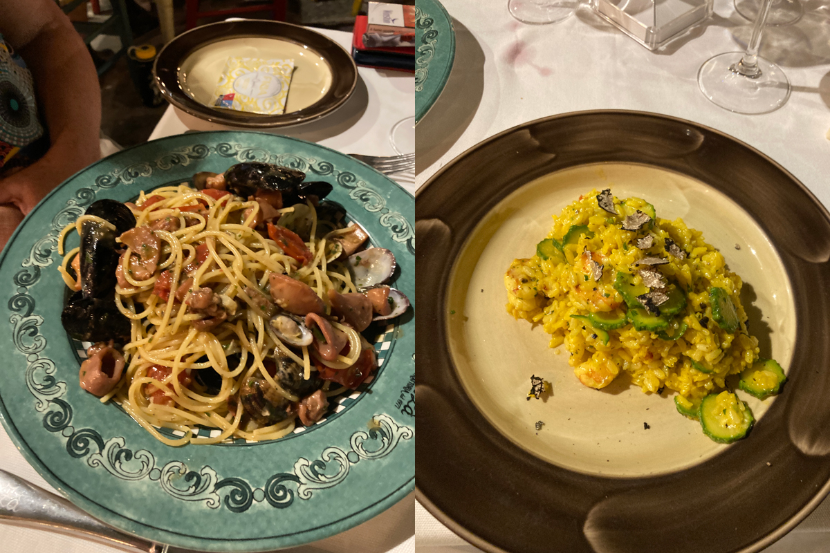 At Vernazza we went to the same bar we visited after our last Cinque Terra hike in 2017 and the beer after both hikes was amazing. While there we met a French lady from Paris and proceeded to have a good old session with her. We all got on so well we caught the train to Monterosso where we had a most amazing seafood dinner, I had Sea Bass which might just be the best seafood dish I've ever had, Kris had pasta with Pesto, Pesto was apparently invented here and Kris gave it two thumbs up. We then caught the train back to Manarolla.