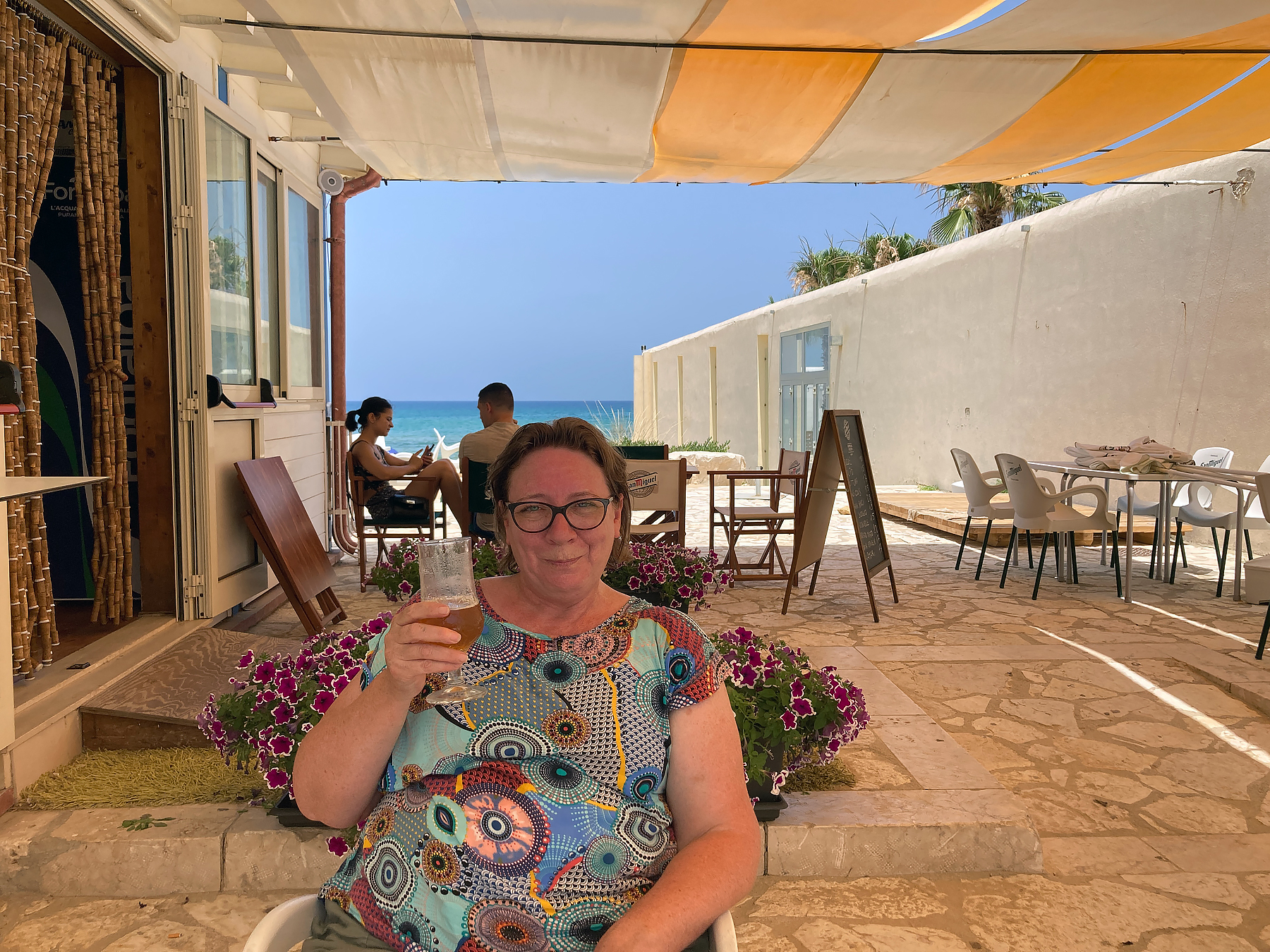 ABOVE: Alcamo Marina, too hot to be in the sun swimming but not too hot for a beer!