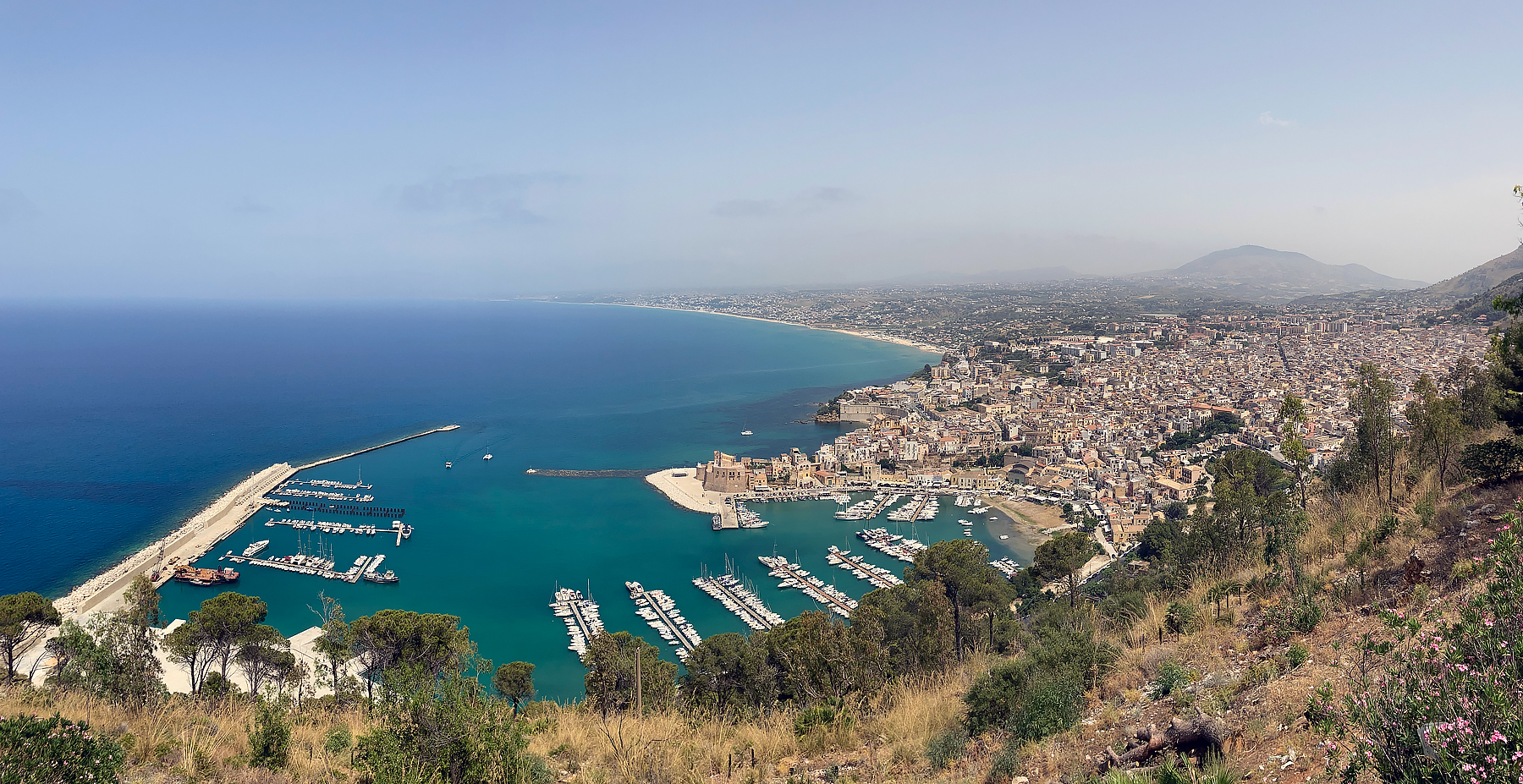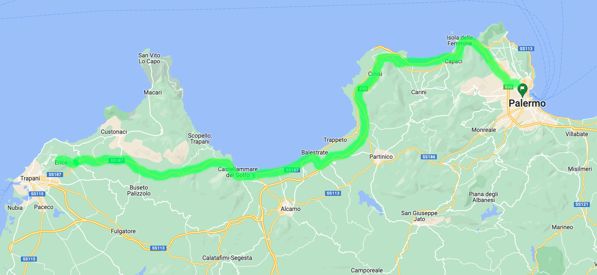 We started climbing after our pit stop and soon were way above the sea, this is the view of Castellammare del Golfo the last major town on the coastal road from Trapani to Erice.