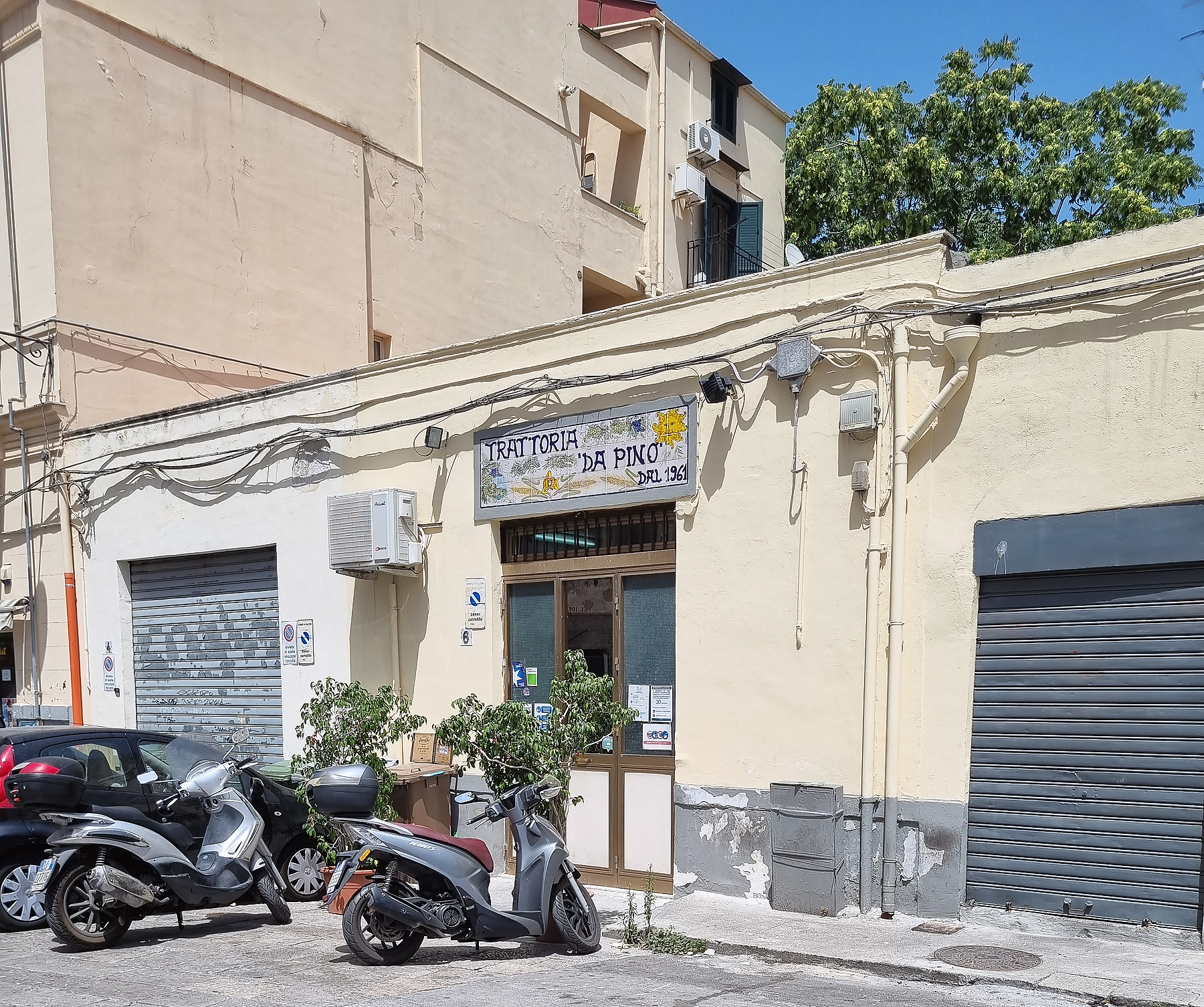 I finally cracked today. The heat has done me in. What sort of heat are we talking about? You can be in an air conditioned shop, be feeling quite ok then go outside and sit under a tree or umberalla and making no movements the sweat would start dripping down your nose. Kris went for an early morning walk around her beloved Palermo, I stayed in bed, we then had breakfast and Kris and Louise went for a walk, I stayed in the hotel room. When Kris returned it was getting late for lunch so I ventured out into the oven, we found, thanks to Google maps, a lovely little family run restaurant very close to our hotel. From the outside, BELOW: we weren't even sure if it was open but we saw a couple go in and followed.
