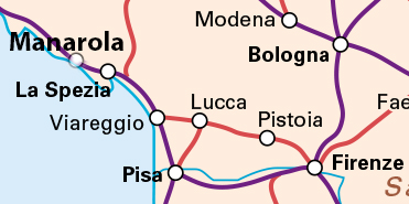 We made our way to the main station at Florence and commenced our journey to Cinque Terra, so called because it consists of 5 lands, or 5 towns. Whilst waiting for our train I snapped this passenger train with one of Trenitalia's cutest little diesels. We travelled via the branch line through Pistoia where we had lunch and Lucca, at Viareggio we changed to a mainline train to La Spezia and then to Manarola.