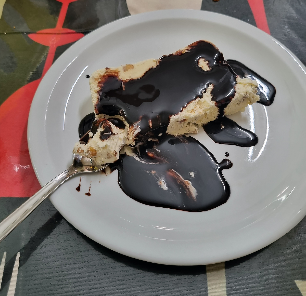 Our mains were simple pasta dishes, sorry no photos as we started eating straight away. Mine was sardines and fennel, the sardines tasted like they had been caught just a few hours before. We cleaned up our plates with bread and the waiter then told us that to soak up the juices with bread meant he would have to charge us extra! Oh he was a jolly fellow! We then let him decide which dessert to have, it was ricotta with marzipan and almond flakes. BELOW