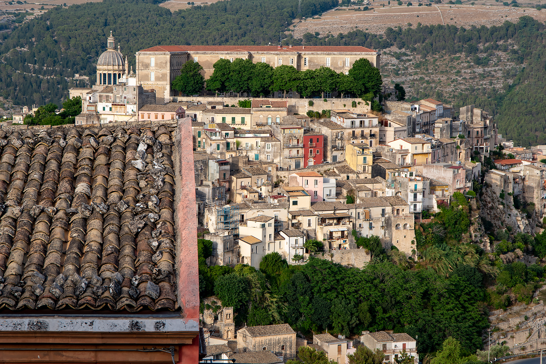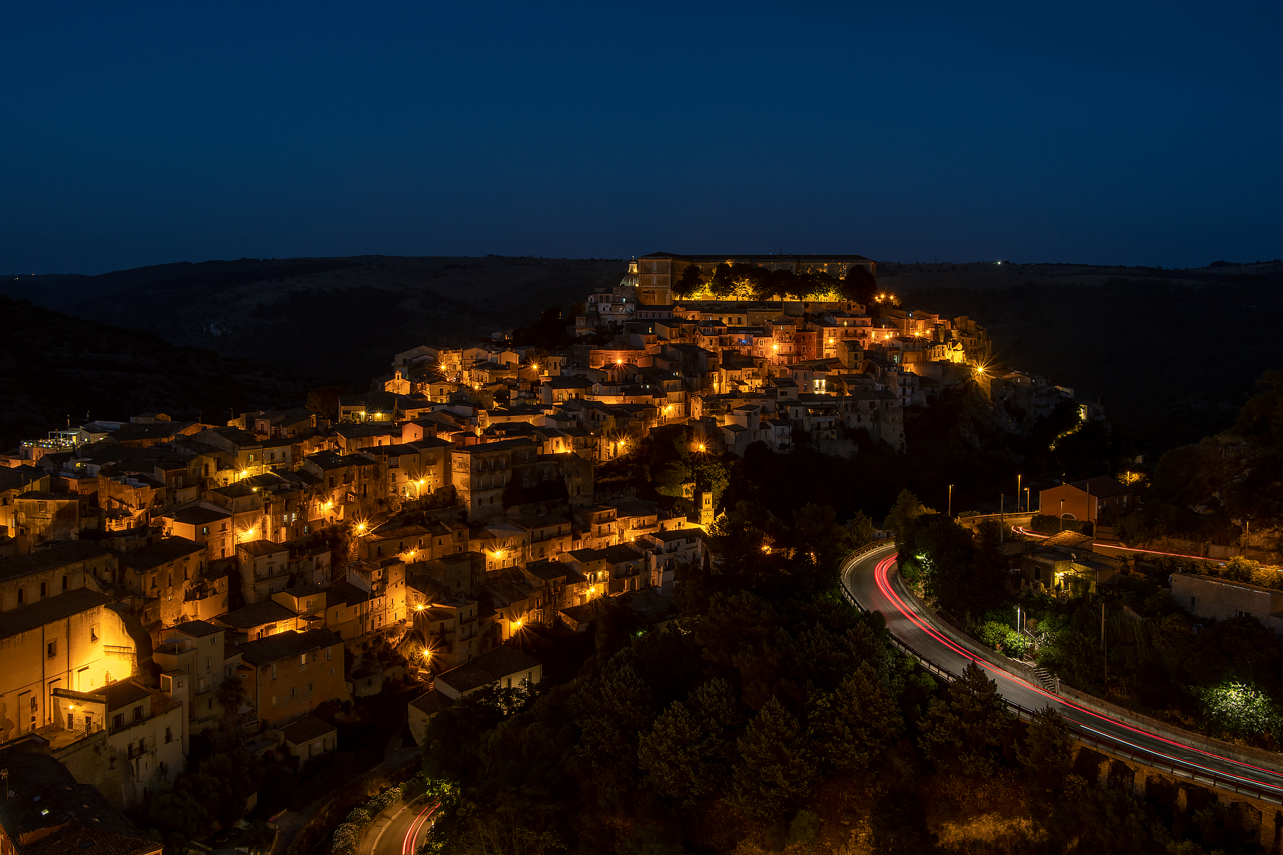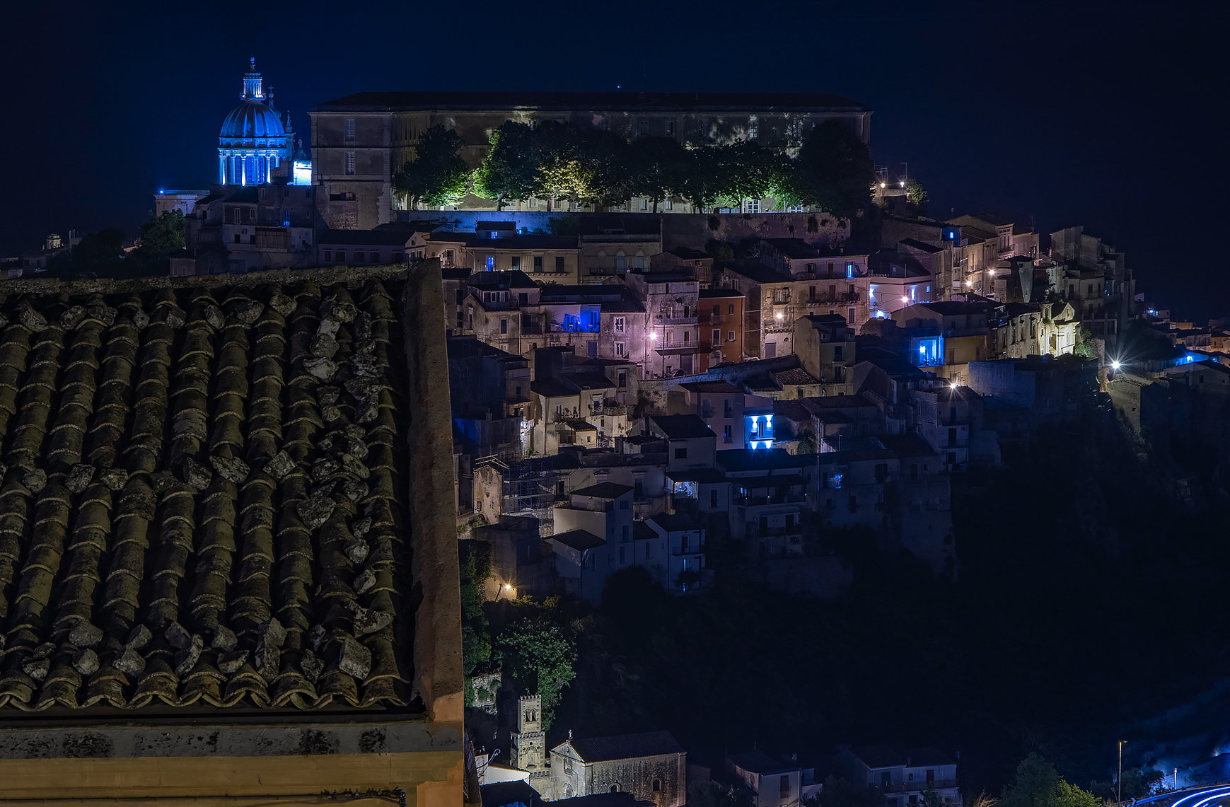 ABOVE & BELOW: A good example of how, in photography, light is everything. Exact same scene, from our appartment balcony in Ragusa, taken well before sunset and well after sunset.