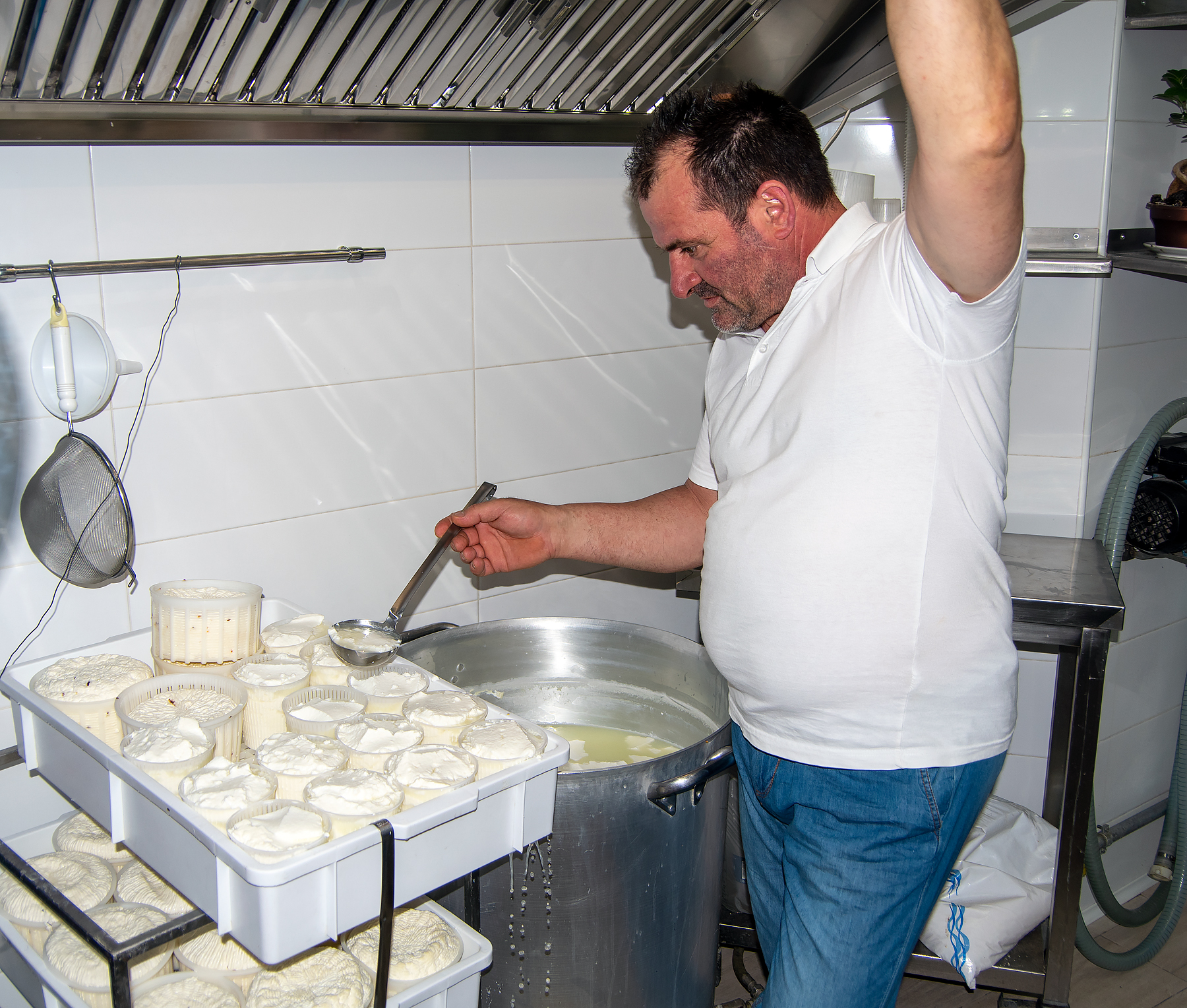 There were two reasons to visit Modica. We ate at a trattoria called Ricotta & Co and thought they made the best ricotta stuffed ravioli we've ever tasted. We ordered it again and were not disappointed. The other reason to visit Modica was to buy Gabby bars of their unique Modica chocolate. We bought 8 bars but we will have to eat them ourselves if the heat starts to melt them. They make their own ricotta right in the trattoria and here is the owner dishing up a new batch into the moulds. BELOW: