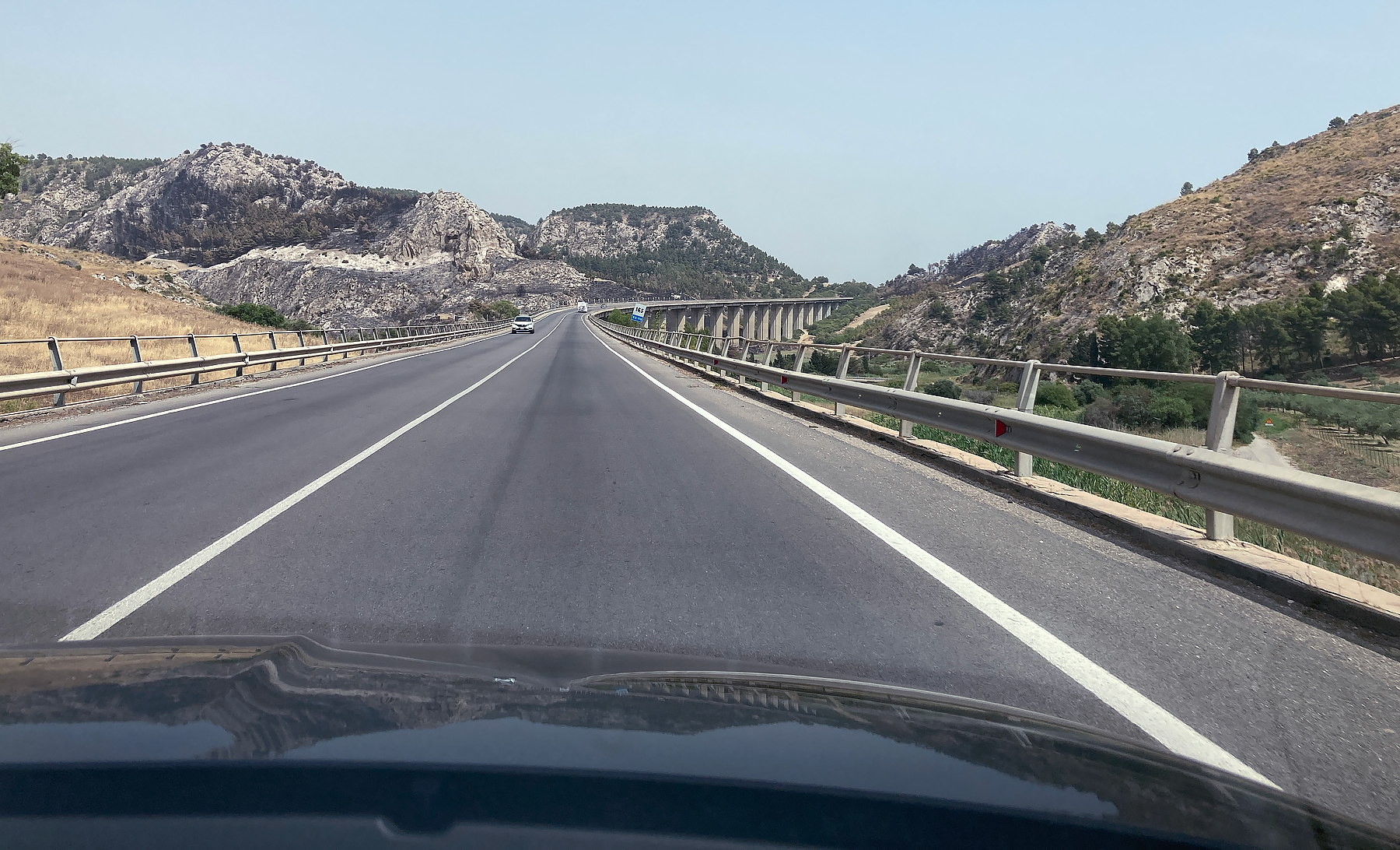 We ate lunch at a little cafe in Marsala, home of the famous wine. It was as close as Italians come to fast food but it was delicious. We then drove on towards Agrigento, home to some of the best preserved Greek ruins anywhere, it is somewhere Kris had wanted to go during our last two Sicily trips. BELOW: A view from the car of a long viaduct between Marsala nad Agrigento.