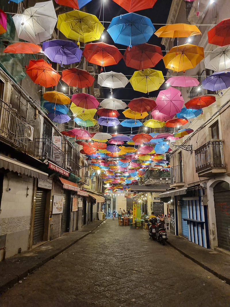 BELOW: On our walk back to the B&B Kris took this night photo of the brollies.