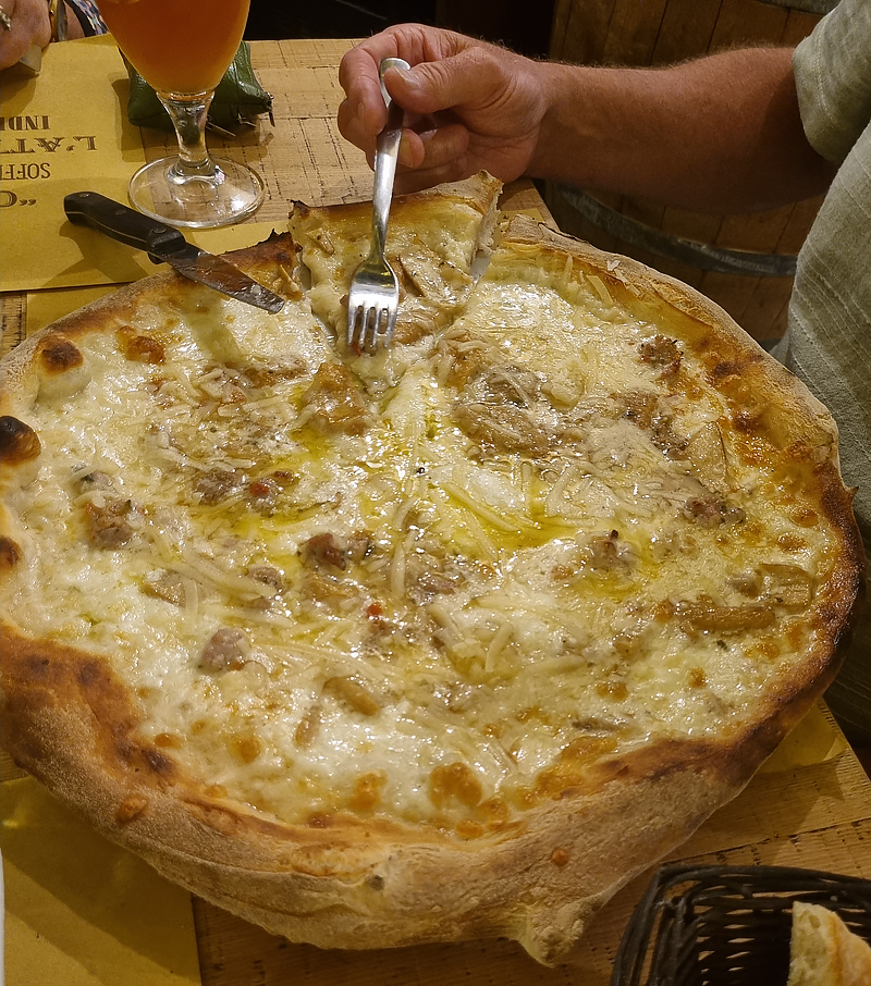 We ate at a place recommended to us by the lady at our B&B. On the menu there were many dishes with horsemeat, this is quite common in Sicily. I ordered a pizza that did not have any tomato base but had cheese, mushrooms and truffle oil. It was amazing, the only problem was it was big enough to feed a family of six!