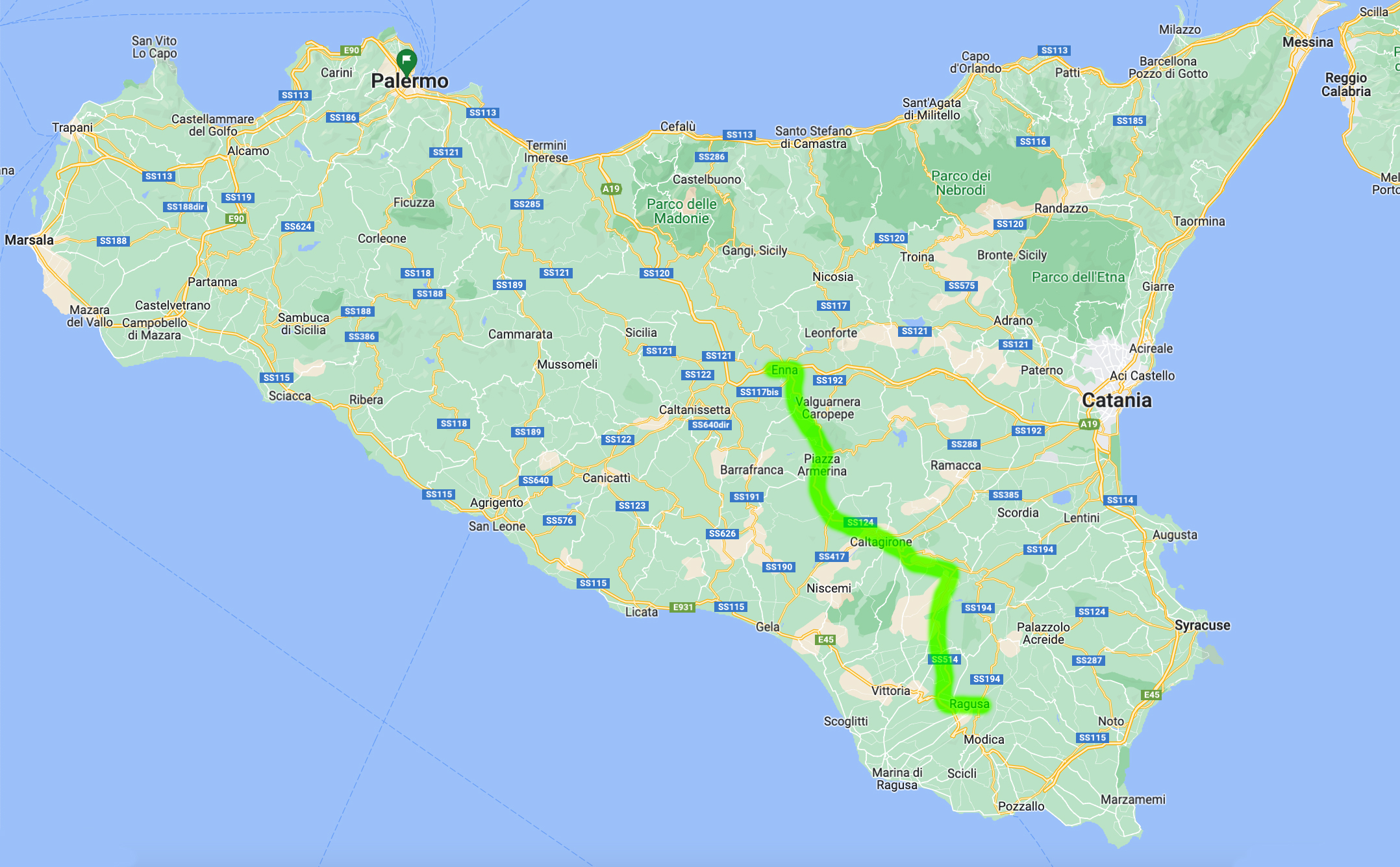 We arrived at the hilltop town of Enna, it was much bigger and busier than we expected but it has amazing views. This shows the village of Calascibetta.