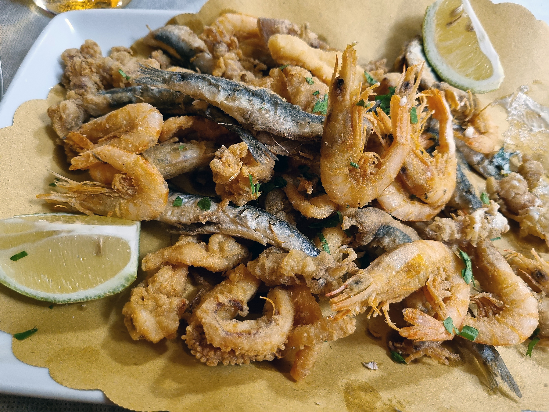 ABOVE: Kris had the lightly fried seafood.
