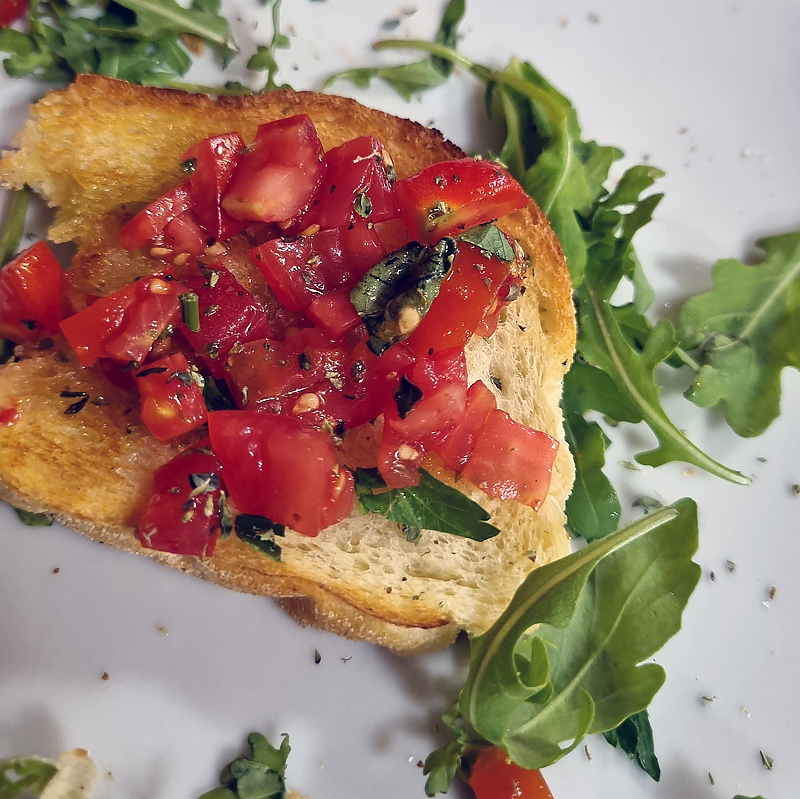 ABOVE: After our heat induced siesta we ventured out and found an amazing trattoria, are there any bad food places in Italy? Here is the entree Bruschetta.