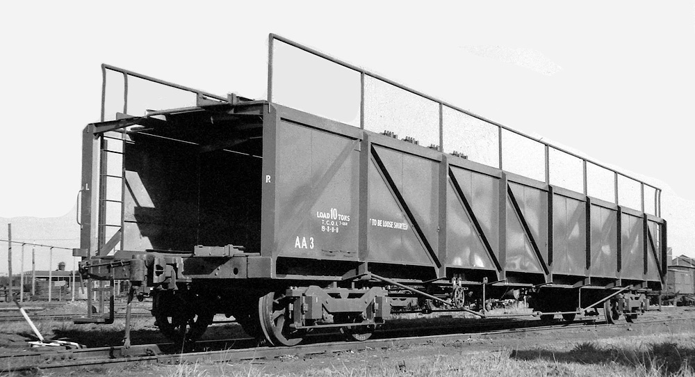 ABOVE: AA 1 was issued to traffic July 1958 which is probably when this photo was taken. BELOW: AA 2 did not appear until 2 years later being issued to traffic July 1960. It would appear that AA 1 was a test as it was the only AA not to have panel sides. The steam loco tender bogies and passenger car underframes meant that they probably didn't cost the VR too much money to construct. Both photos courtesy PROV.