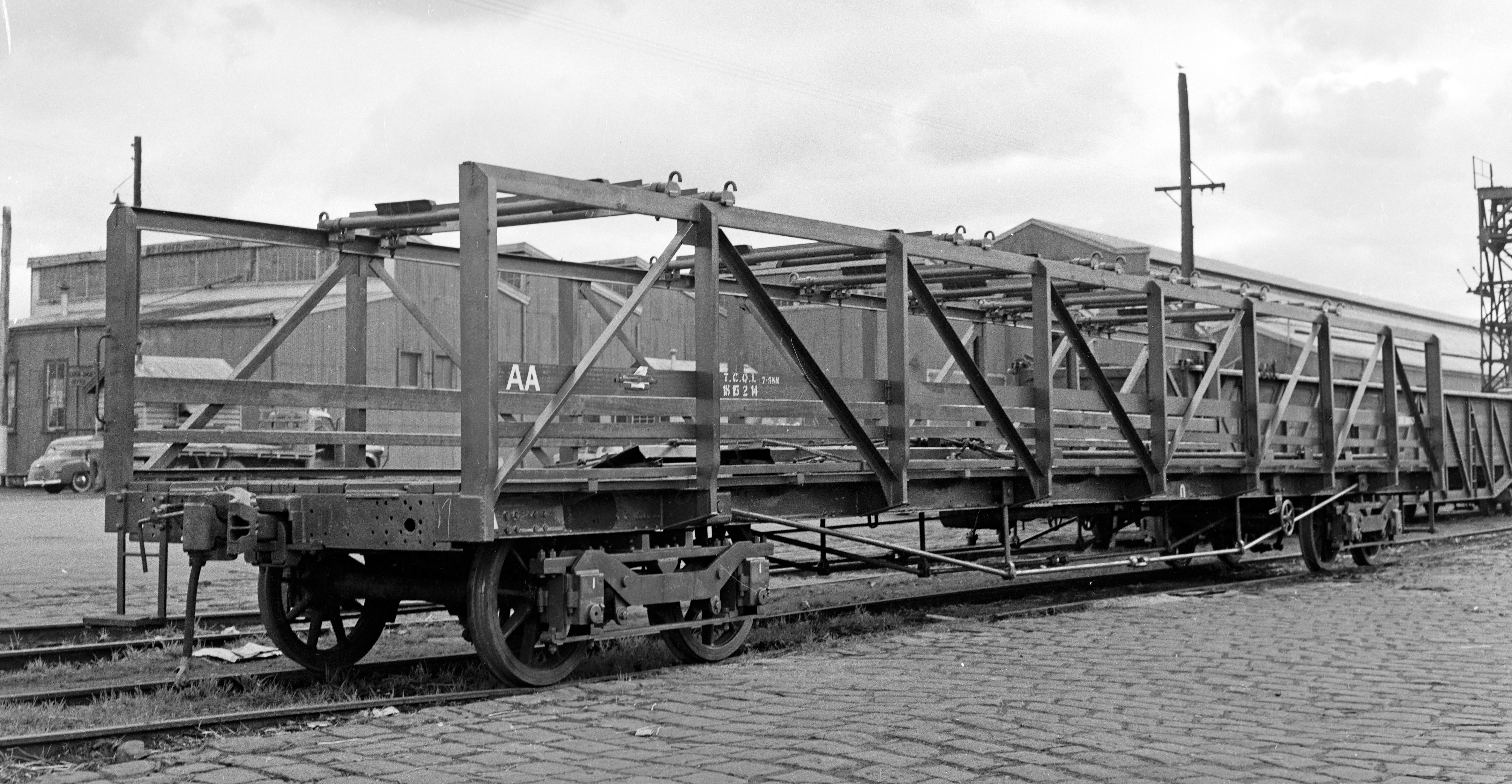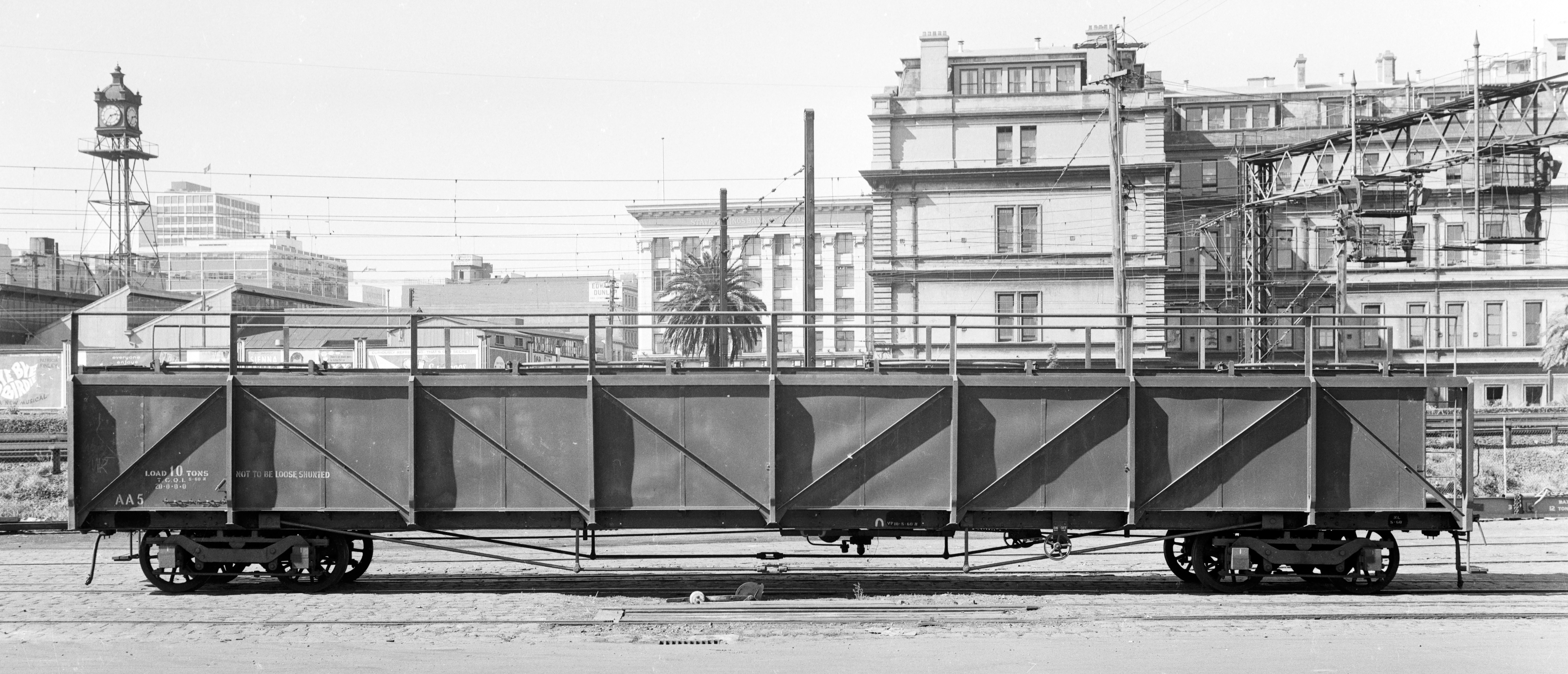 This class totalled 22. Built at Nth Melbourne workshops as AA class, numbers 1 - 14 were built from reused carriage underframes and fitted with steam loco tender bogies. It appears that AA 1 was originally built without side panels and was equipped with them later. In 1961 they were fitted with roller bearing bogies and re-coded to AF, and then to AX 1963 - 1965.